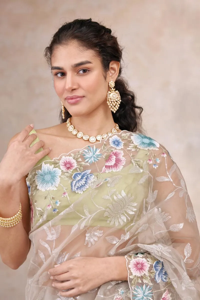 Professional dry cleaning only. The garment should be kept in Soft Muslin fabric. Do not spray perfume directly on garment. Avoid mothball use. Kindly keep the garment in moderate climate as same of the embroidery material tends to react with the weather change.