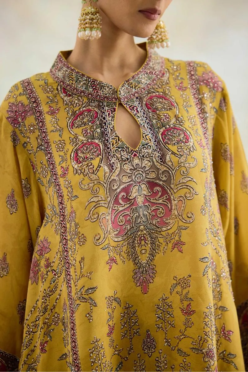 Professional dry-cleaning only. The garment should be kept in Soft Muslin fabric. Do not spray perfume directly on garment. Avoid mothball use. Kindly keep the garment in moderate climate as same of the embroidery material tends to react with the weather change.