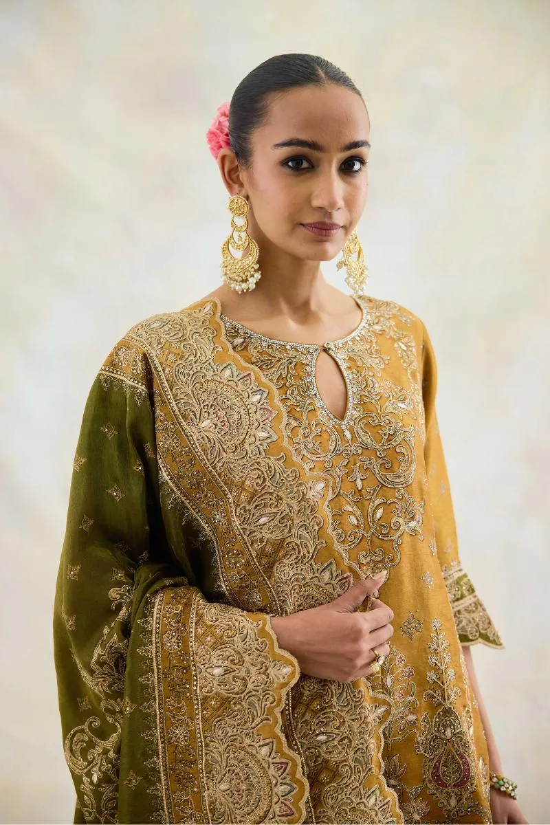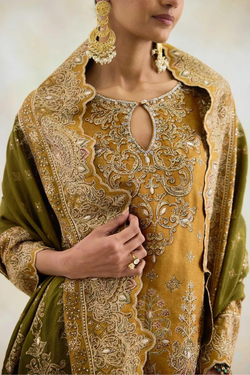 Professional dry-cleaning only. The garment should be kept in Soft Muslin fabric. Do not spray perfume directly on garment. Avoid mothball use. Kindly keep the garment in moderate climate as same of the embroidery material tends to react with the weather change.