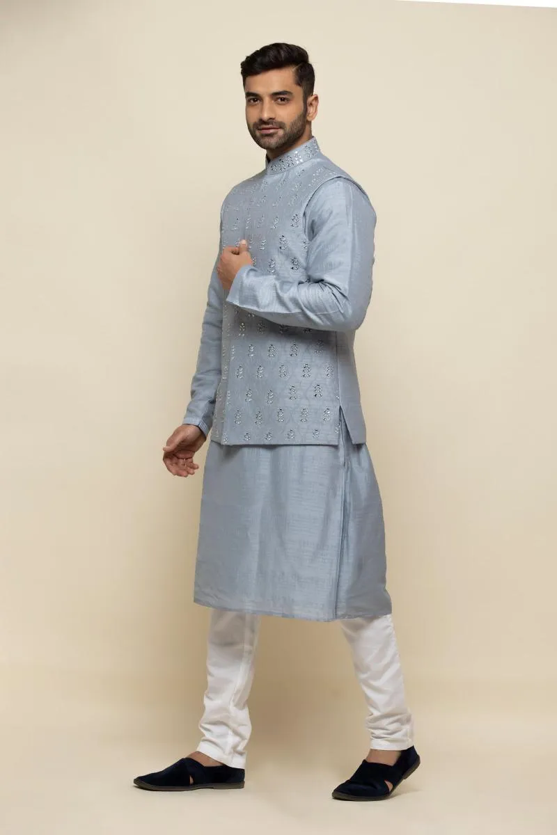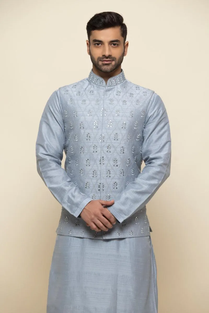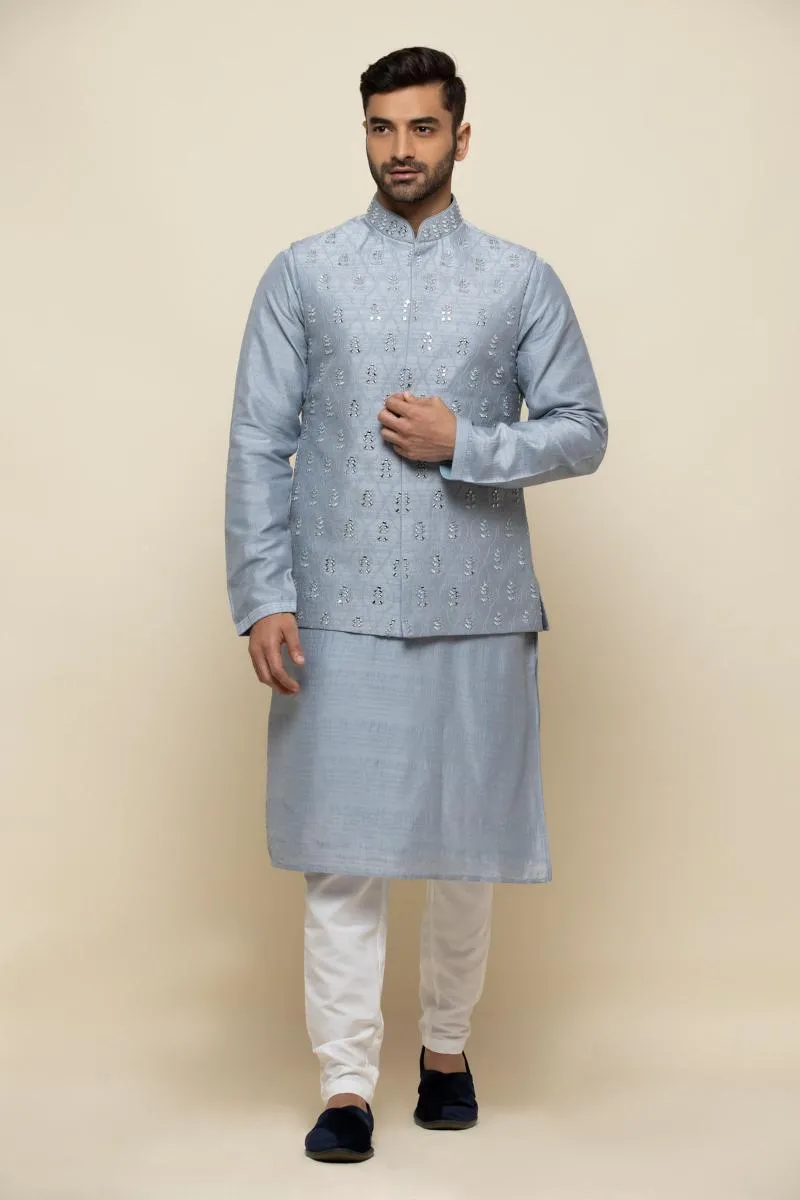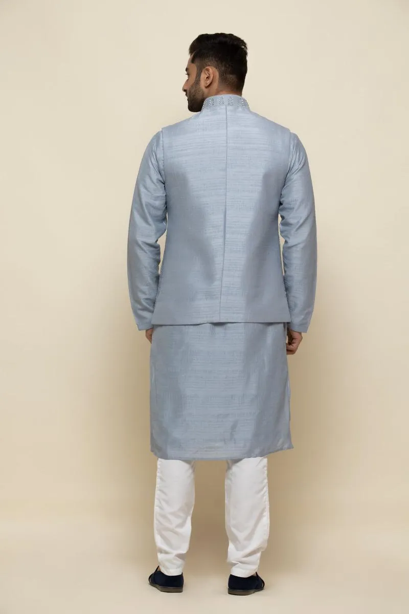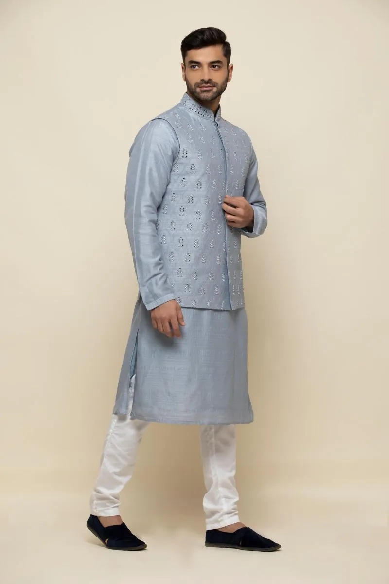 Ice Blue Silk Jacket Set