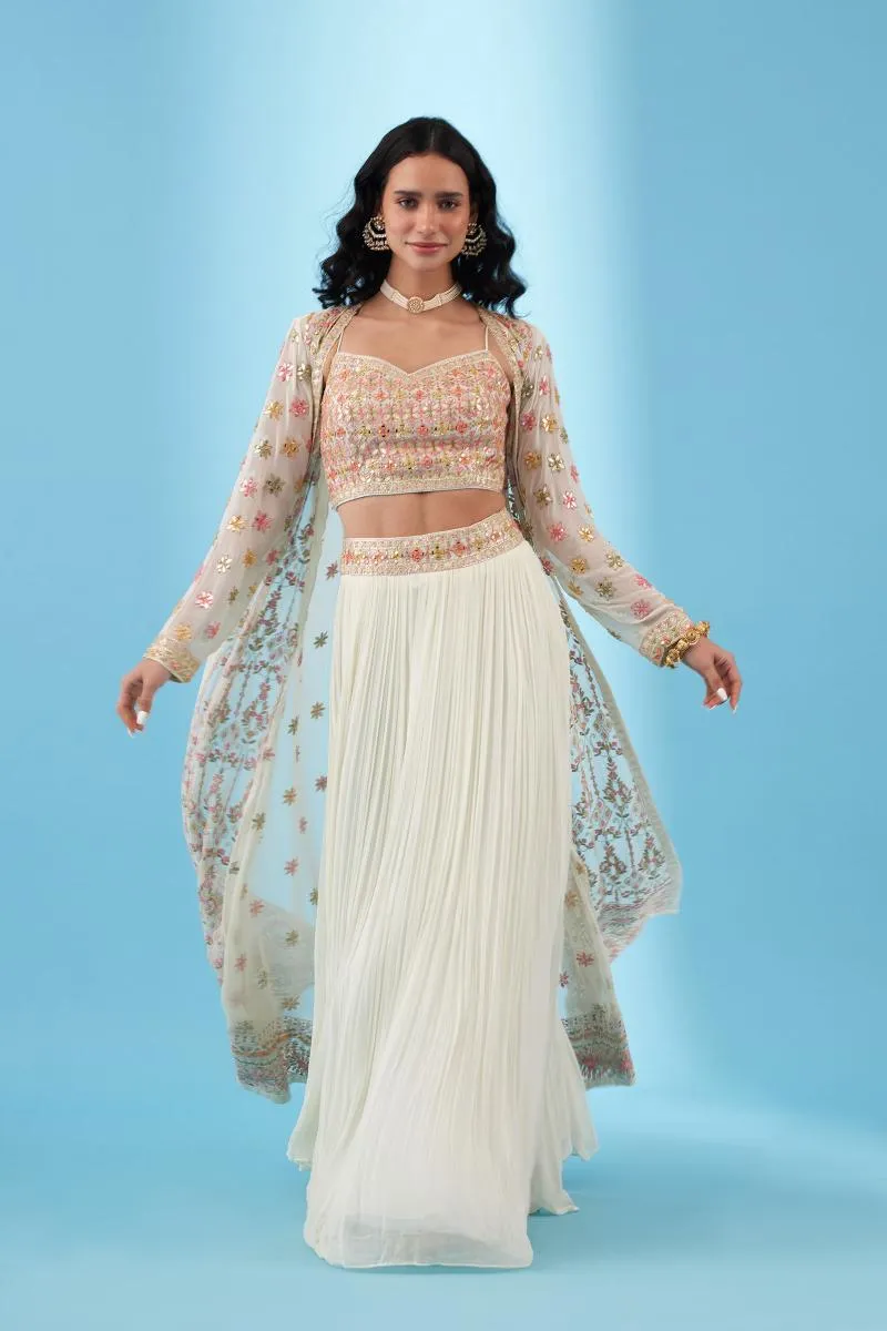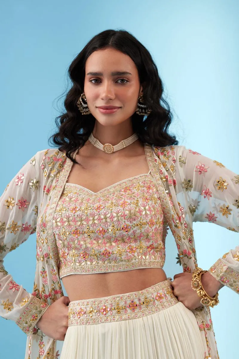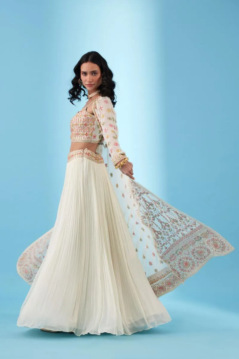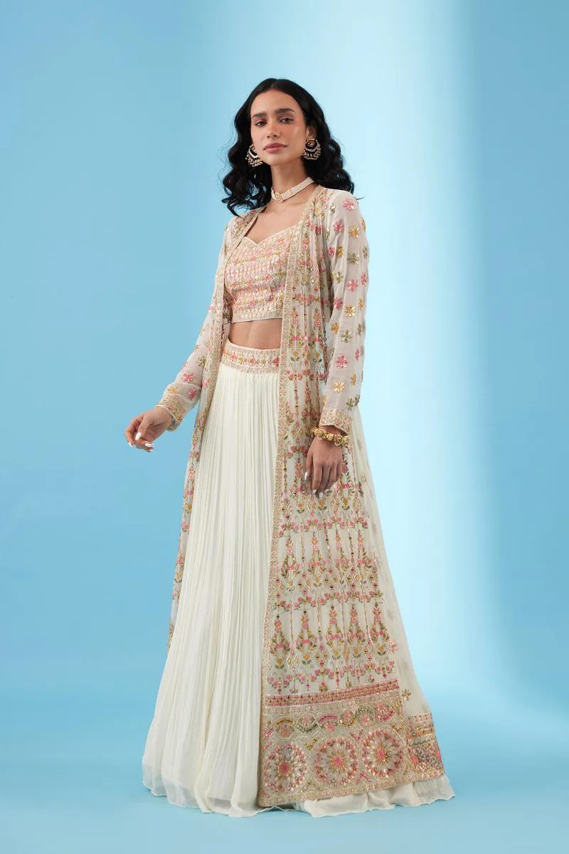 Ivory Embroidered Jacket Lehenga