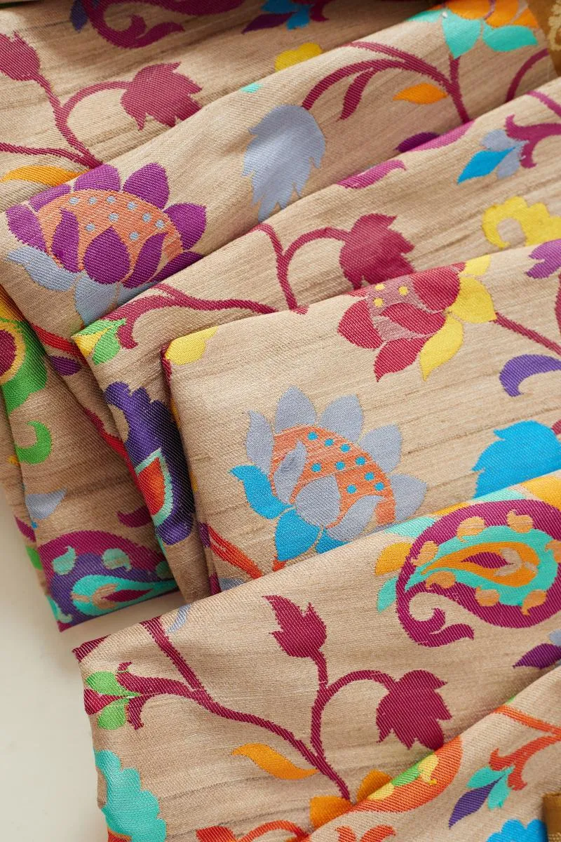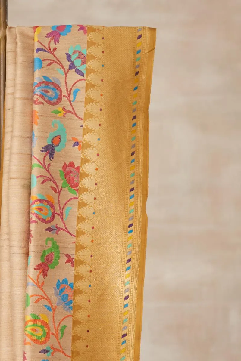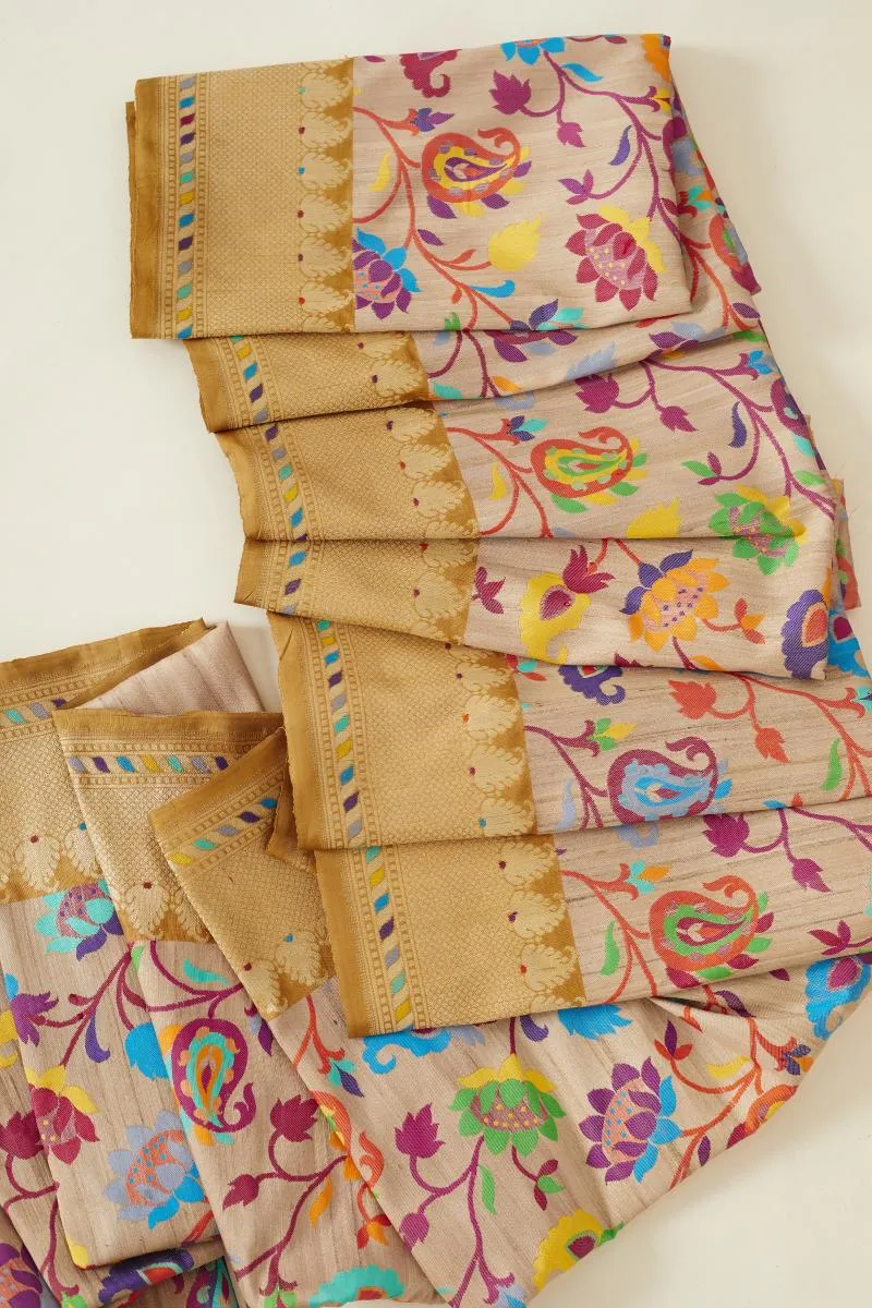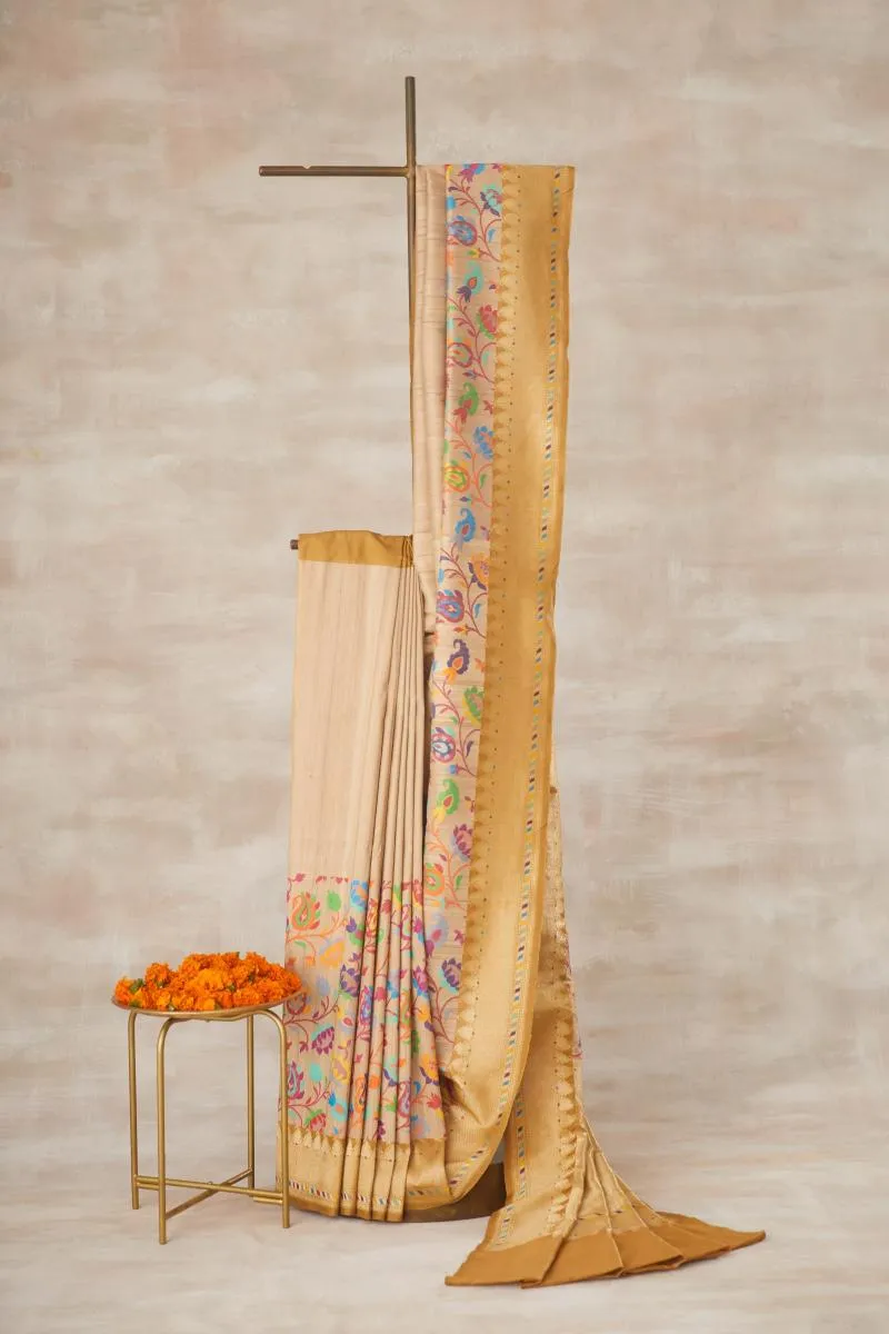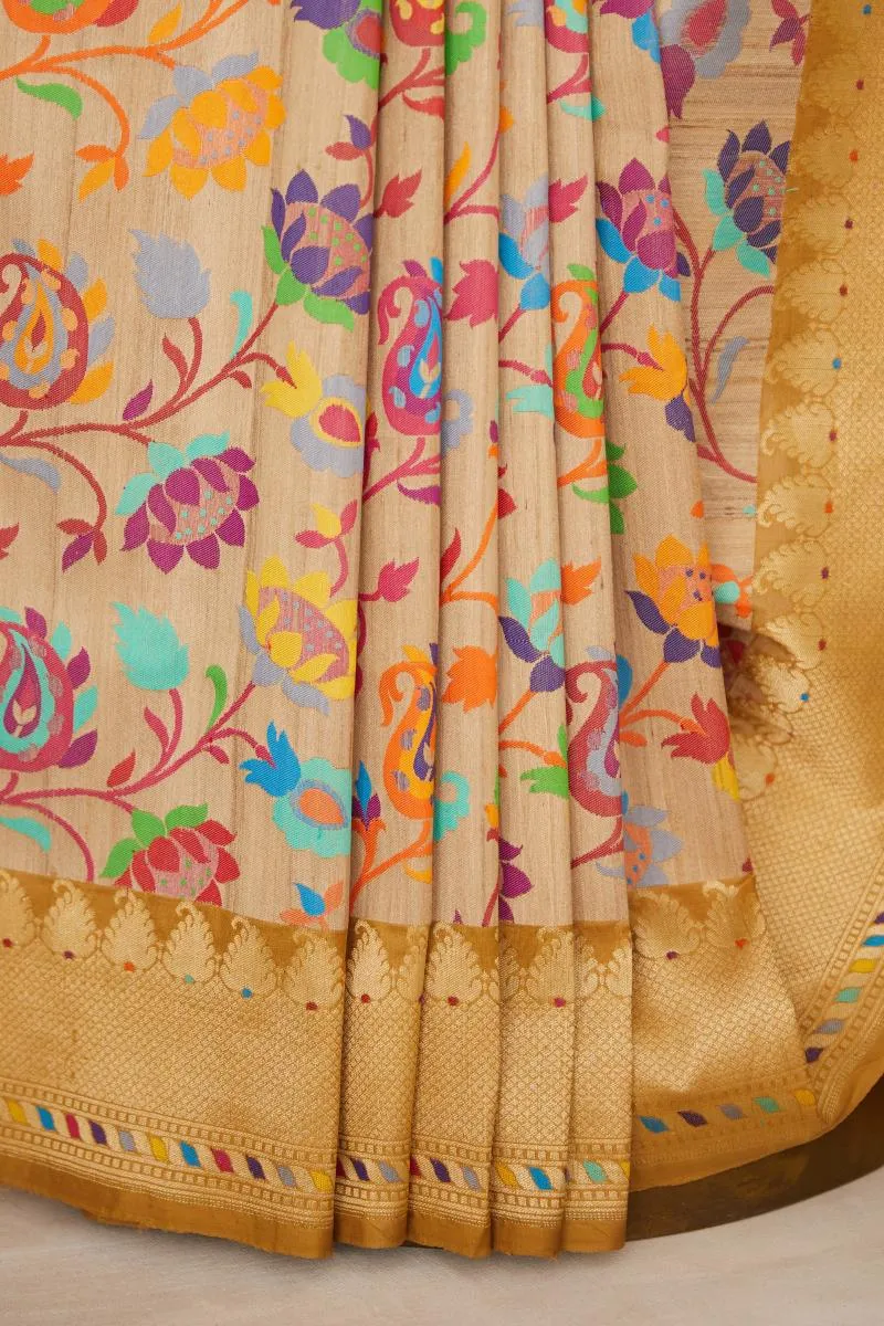 Ivory Floral Printed Banarasi Tussar Silk saree