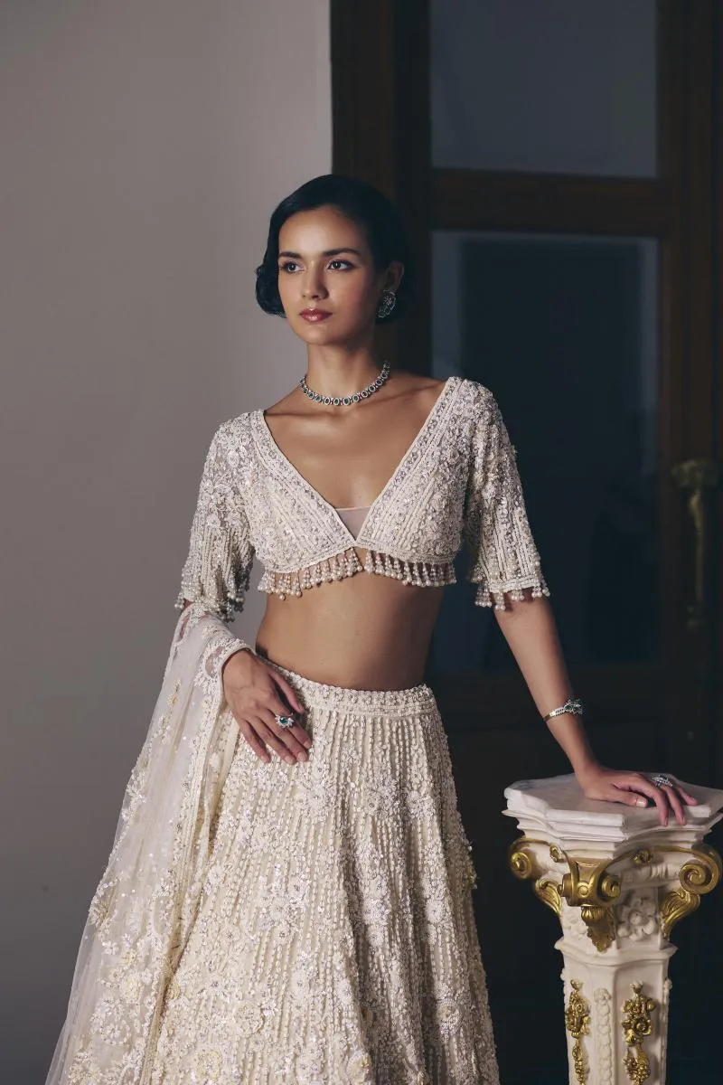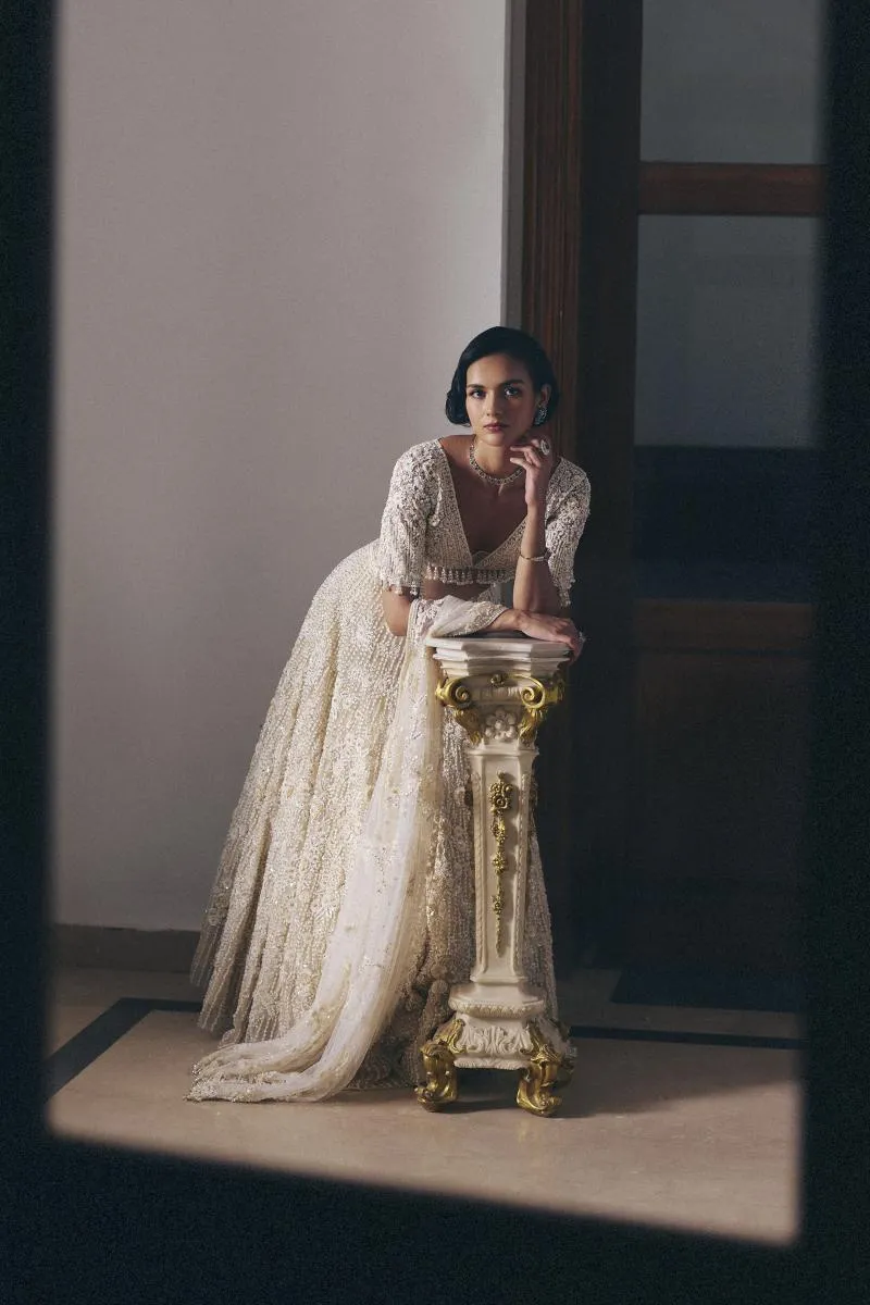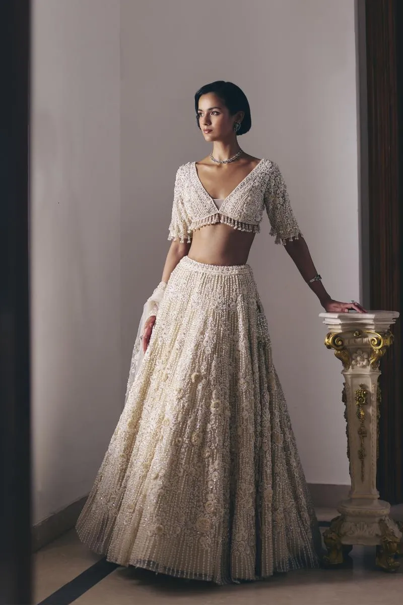 Professional dry-cleaning only. The garment should be kept in Soft Muslin fabric. Do not spray perfume directly on garment. Avoid mothball use. Kindly keep the garment in moderate climate as same of the embroidery material tends to react with the weather change.