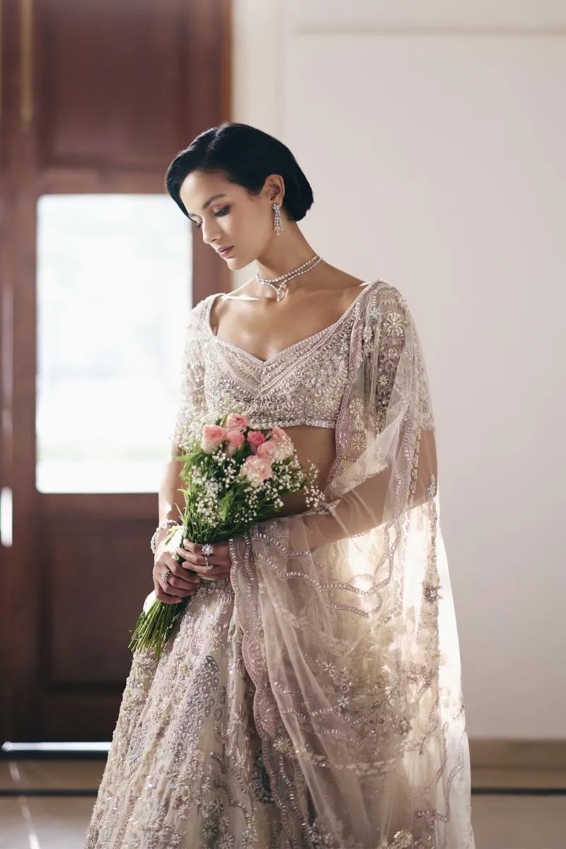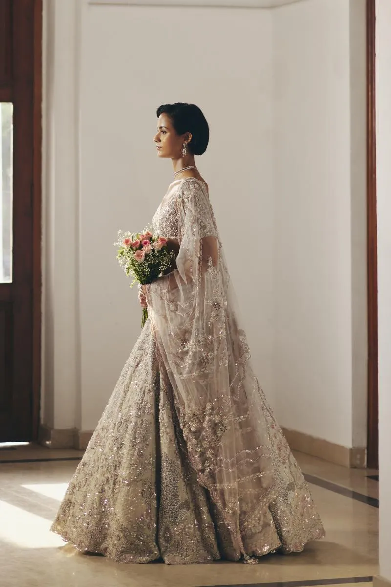 Professional dry-cleaning only. The garment should be kept in Soft Muslin fabric. Do not spray perfume directly on garment. Avoid mothball use. Kindly keep the garment in moderate climate as same of the embroidery material tends to react with the weather change.