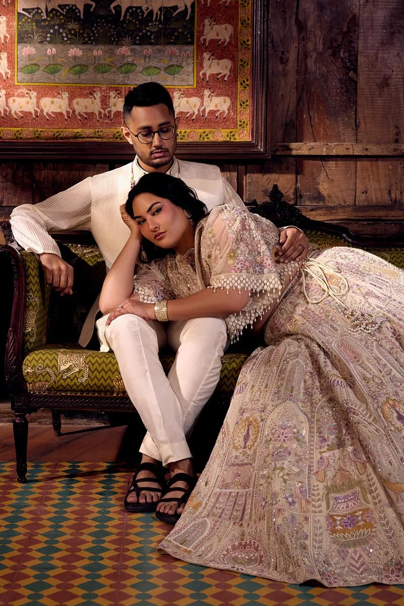 Professional dry-cleaning only. The garment should be kept in Soft Muslin fabric. Do not spray perfume directly on garment. Avoid mothball use. Kindly keep the garment in moderate climate as same of the embroidery material tends to react with the weather change.