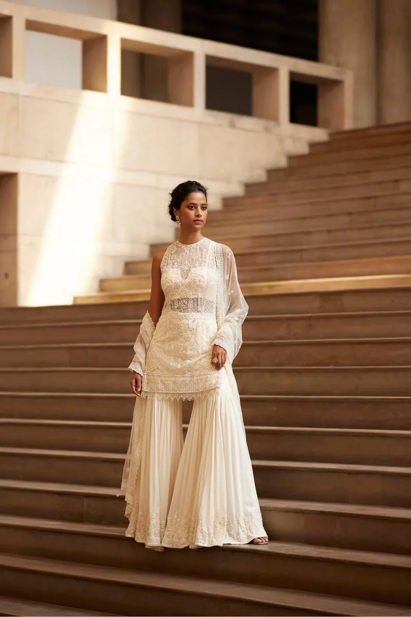 Professional dry-cleaning only. The garment should be kept in Soft Muslin fabric. Do not spray perfume directly on garment. Avoid mothball use. Kindly keep the garment in moderate climate as same of the embroidery material tends to react with the weather change.