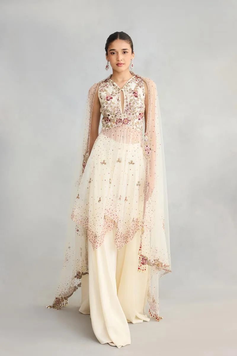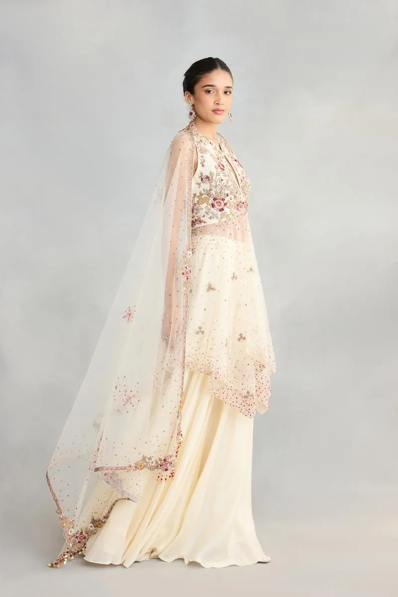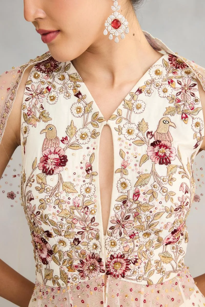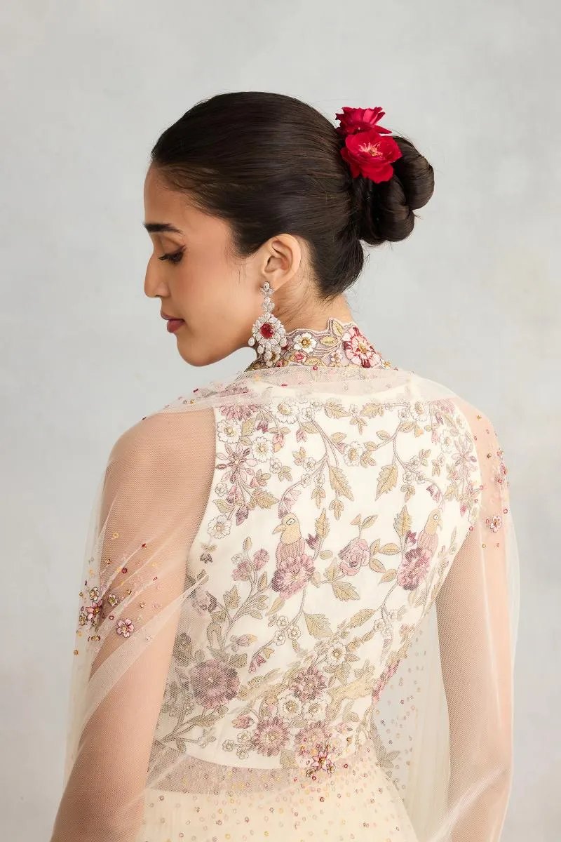 Professional dry-cleaning only. The garment should be kept in Soft Muslin fabric. Do not spray perfume directly on garment. Avoid mothball use. Kindly keep the garment in moderate climate as same of the embroidery material tends to react with the weather change.