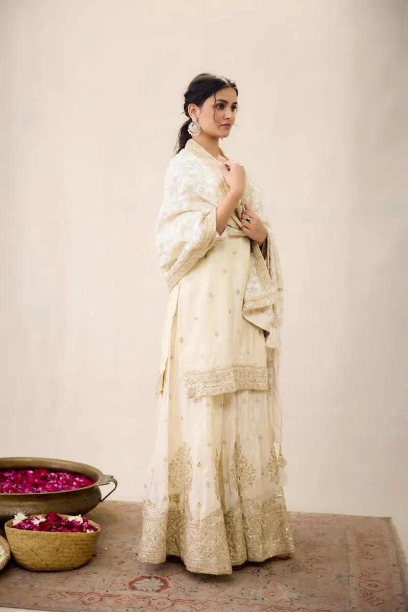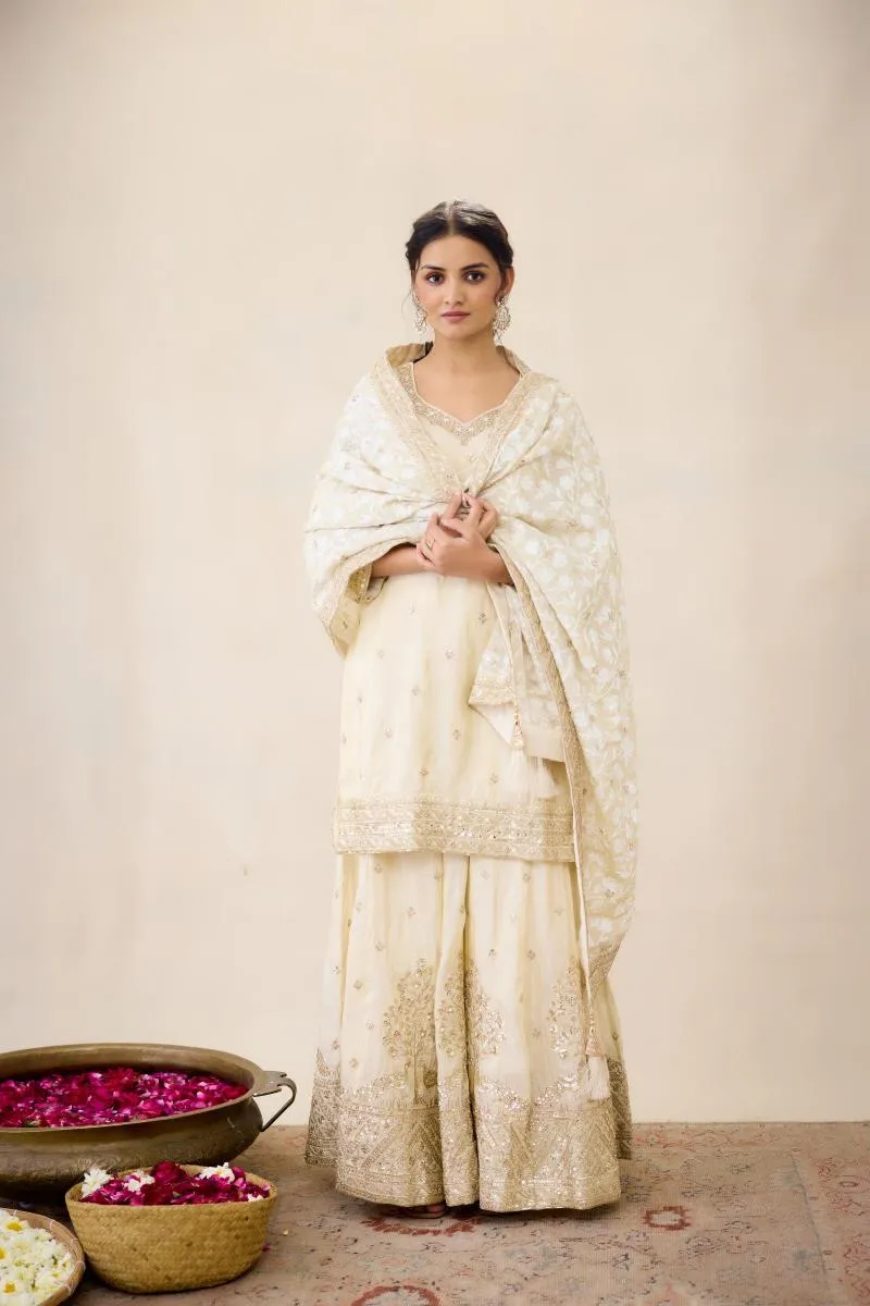 Professional dry-cleaning only. The garment should be kept in Soft Muslin fabric. Do not spray perfume directly on garment. Avoid mothball use. Kindly keep the garment in moderate climate as same of the embroidery material tends to react with the weather change.