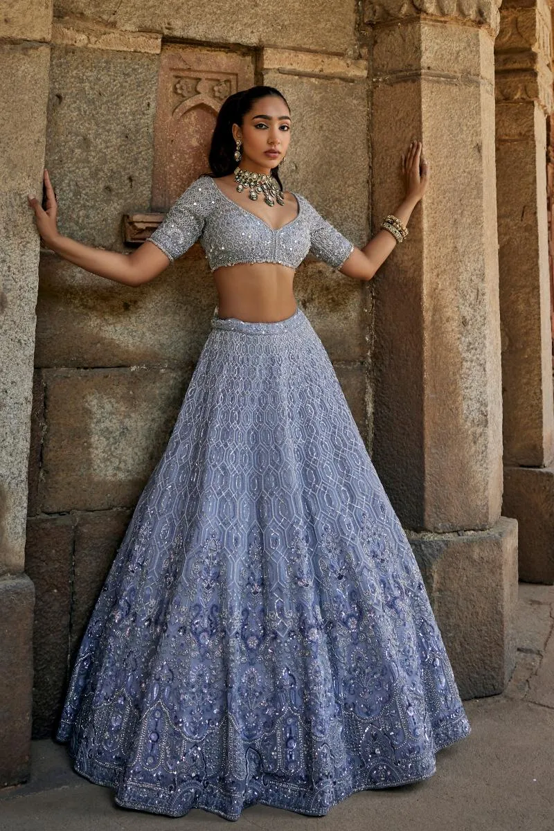 Professional dry-cleaning only. The garment should be kept in Soft Muslin fabric. Do not spray perfume directly on garment. Avoid mothball use. Kindly keep the garment in moderate climate as same of the embroidery material tends to react with the weather change.