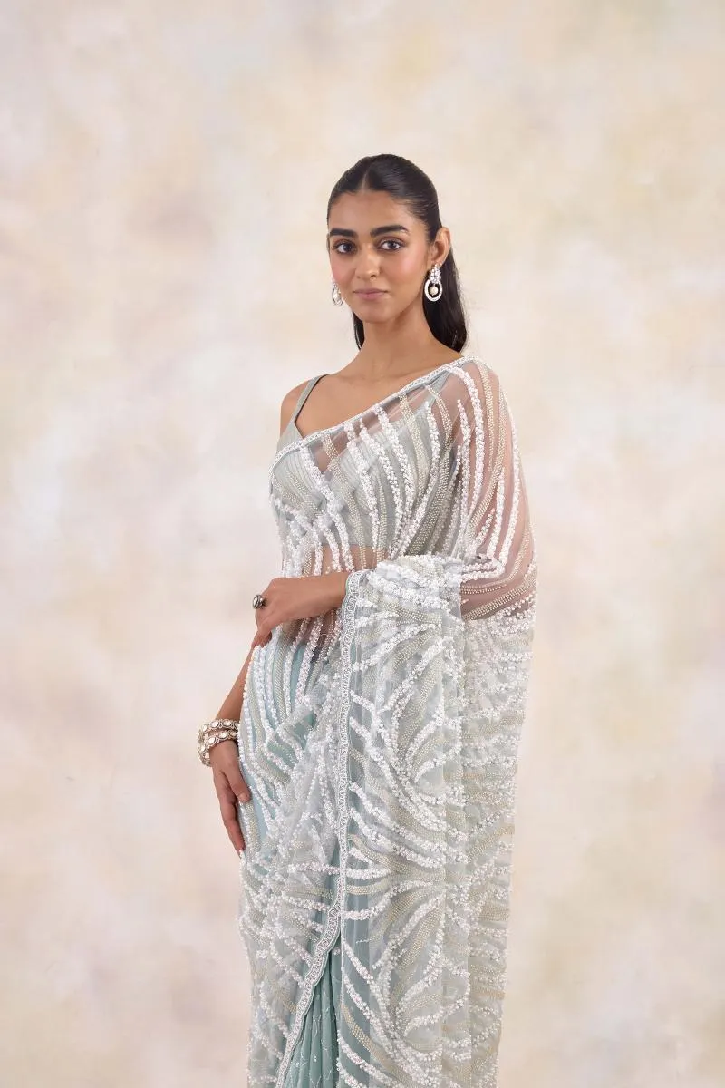 Professional dry-cleaning only. The garment should be kept in Soft Muslin fabric. Do not spray perfume directly on garment. Avoid mothball use. Kindly keep the garment in moderate climate as same of the embroidery material tends to react with the weather change.