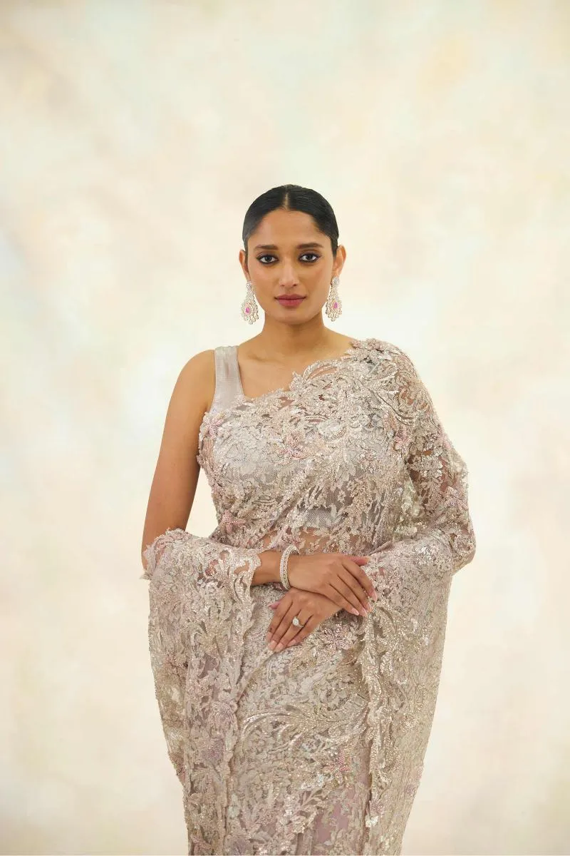 Professional dry-cleaning only. The garment should be kept in Soft Muslin fabric. Do not spray perfume directly on garment. Avoid mothball use. Kindly keep the garment in moderate climate as same of the embroidery material tends to react with the weather change.