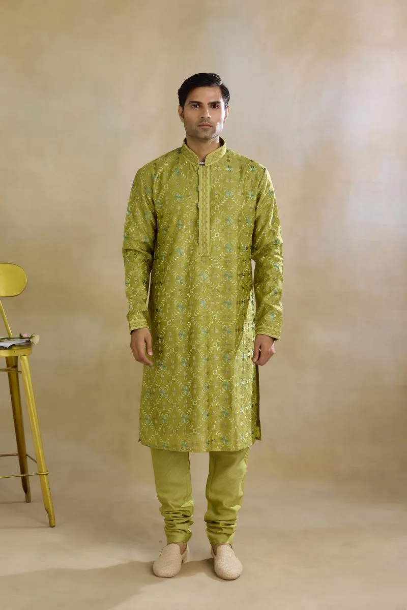 Professional dry-cleaning only. The garment should be kept in Soft Muslin fabric. Do not spray perfume directly on garment. Avoid mothball use. Kindly keep the garment in moderate climate as same of the embroidery material tends to react with the weather change.