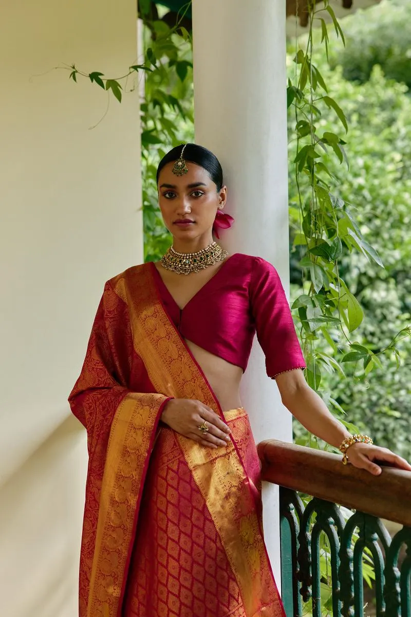 Work: pure xari kanjivaram silk sari with a tradintional peacock jaal & a heavy pallu