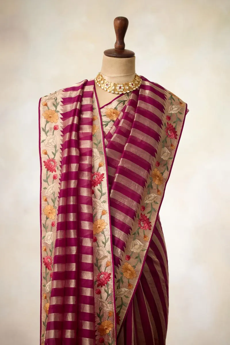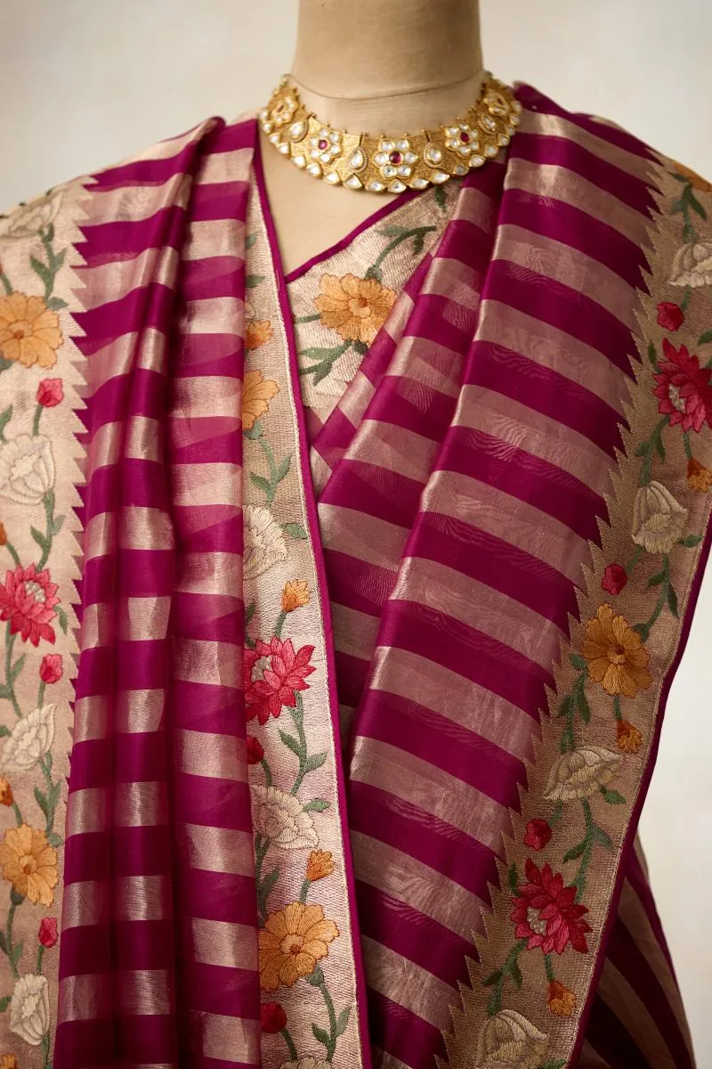 Professional dry-cleaning only. The garment should be kept in Soft Muslin fabric. Do not spray perfume directly on garment. Avoid mothball use. Kindly keep the garment in moderate climate as same of the embroidery material tends to react with the weather change.