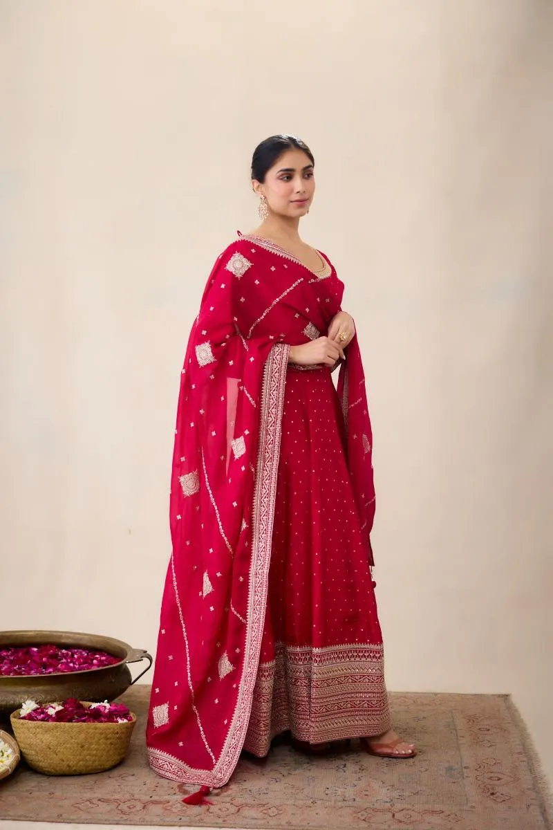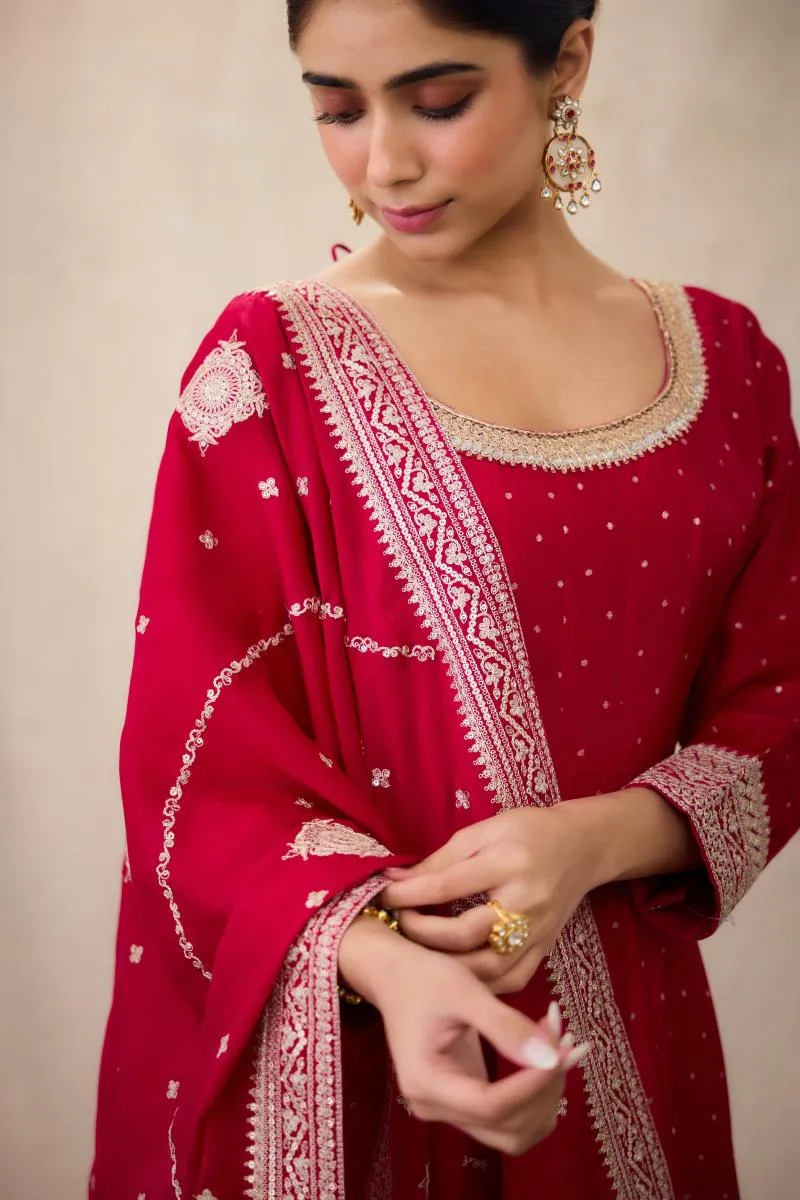 Professional dry-cleaning only. The garment should be kept in Soft Muslin fabric. Do not spray perfume directly on garment. Avoid mothball use. Kindly keep the garment in moderate climate as same of the embroidery material tends to react with the weather change.