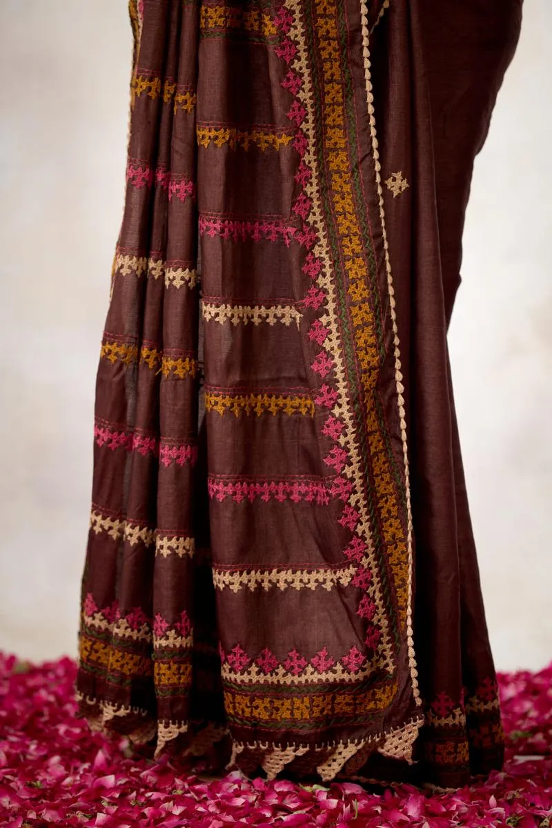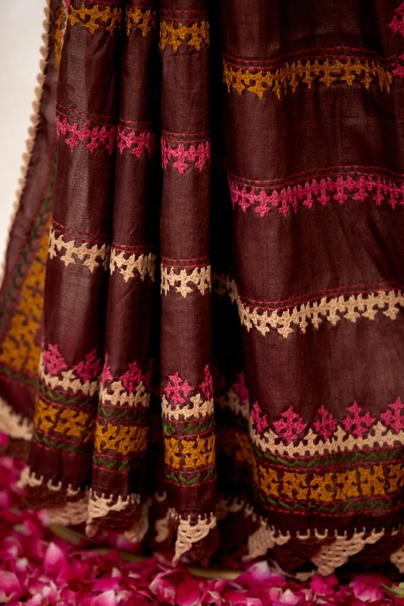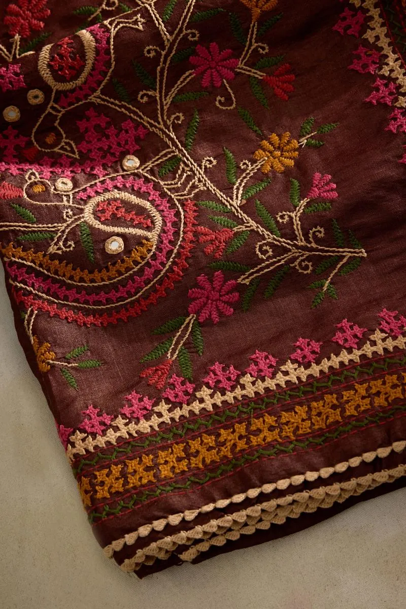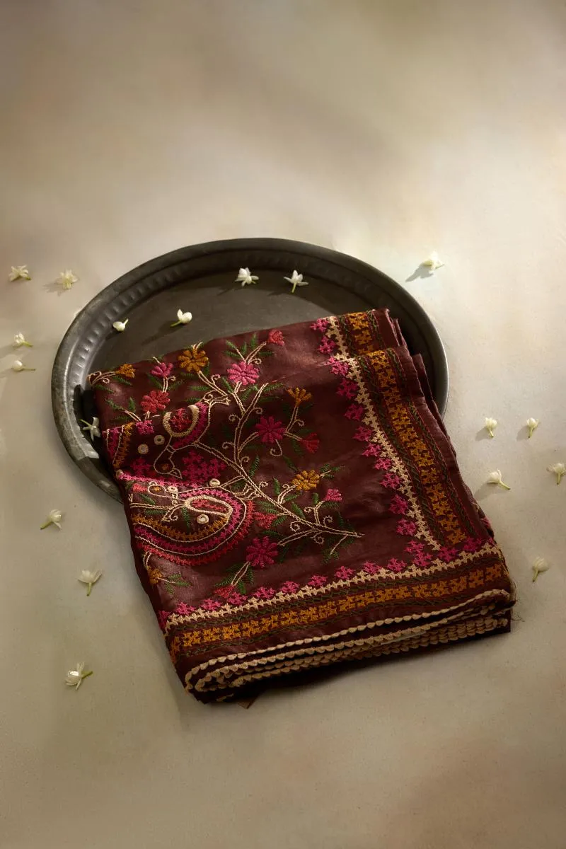 Professional dry-cleaning only. The garment should be kept in Soft Muslin fabric. Do not spray perfume directly on garment. Avoid mothball use. Kindly keep the garment in moderate climate as same of the embroidery material tends to react with the weather change.