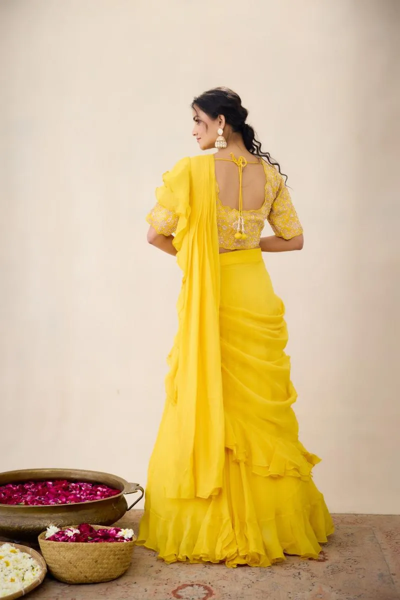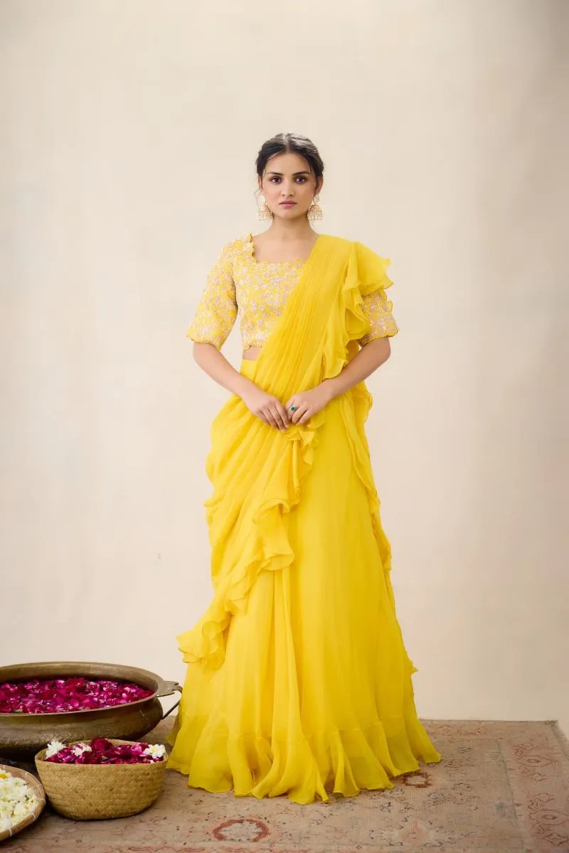 Professional dry-cleaning only. The garment should be kept in Soft Muslin fabric. Do not spray perfume directly on garment. Avoid mothball use. Kindly keep the garment in moderate climate as same of the embroidery material tends to react with the weather change.