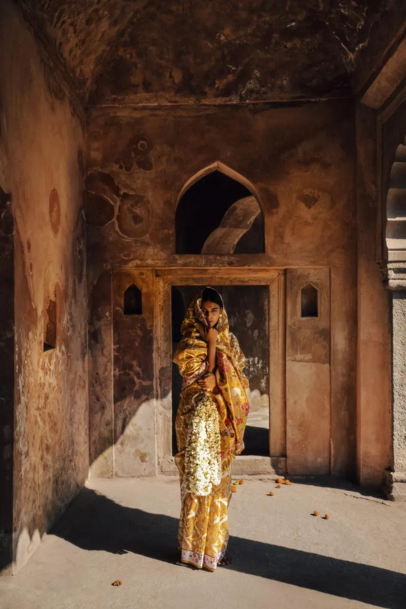 Professional dry-cleaning only. The garment should be kept in Soft Muslin fabric. Do not spray perfume directly on garment. Avoid mothball use. Kindly keep the garment in moderate climate as same of the embroidery material tends to react with the weather change.