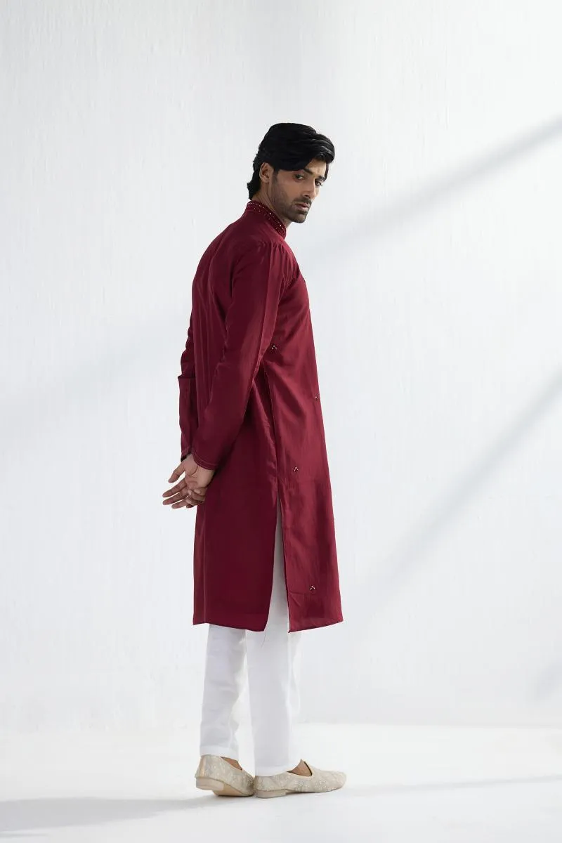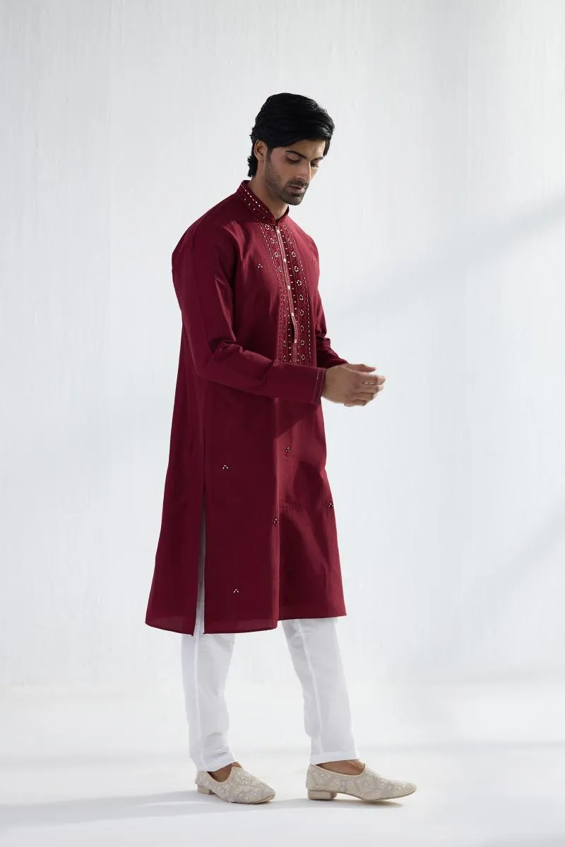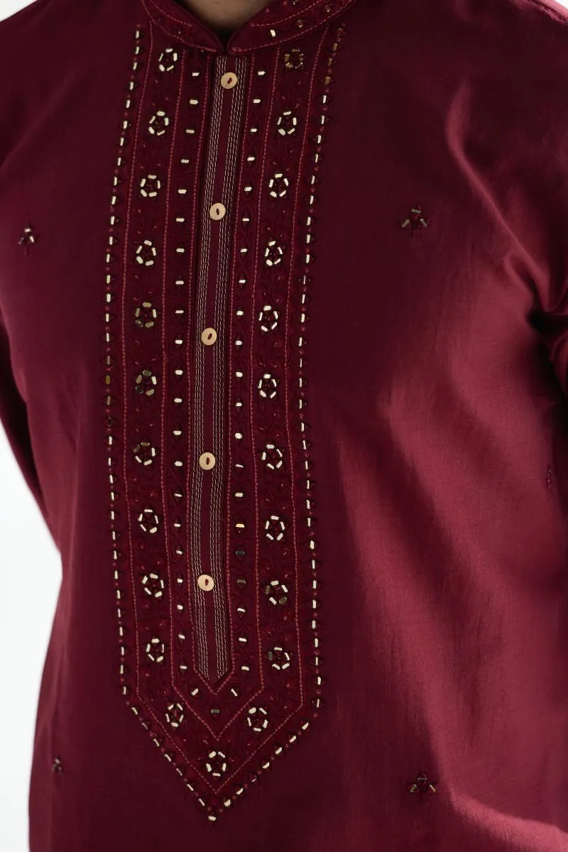 Maroon Cotton Mirror Kurta Set