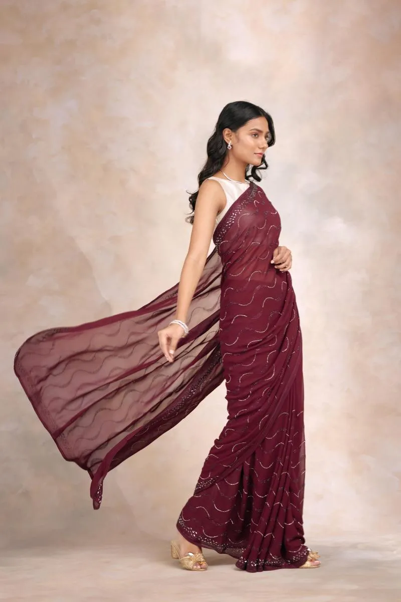Professional dry cleaning only. The garment should be kept in Soft Muslin fabric. Do not spray perfume directly on garment. Avoid mothball use. Kindly keep the garment in moderate climate as same of the embroidery material tends to react with the weather change.