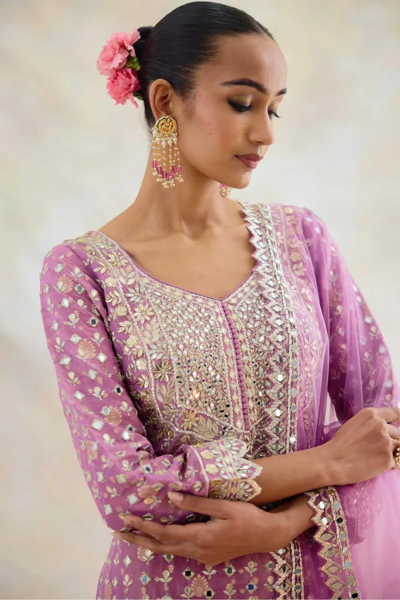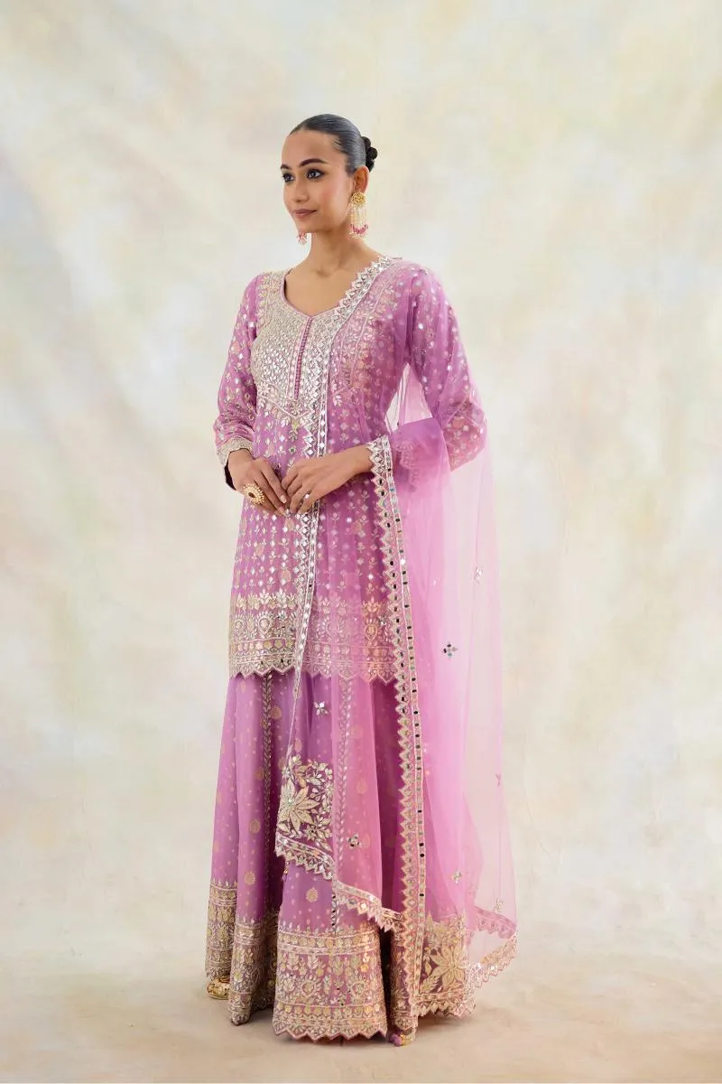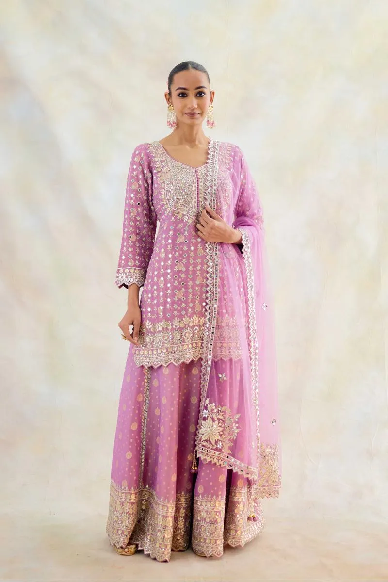 Mauve Silk Sharara Suit Set