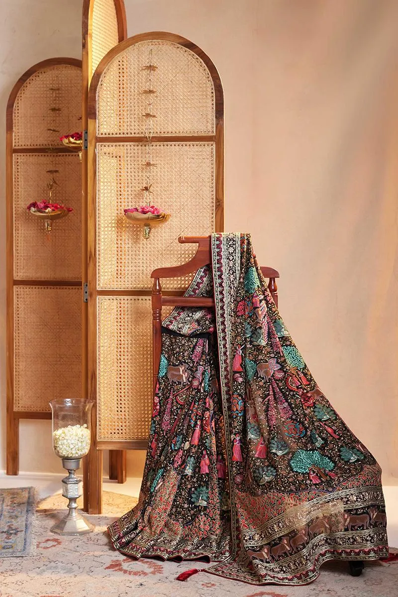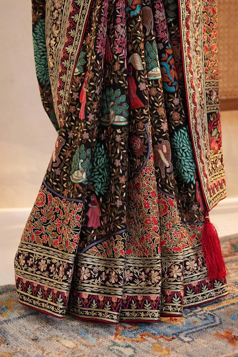 Professional dry-cleaning only. The garment should be kept in Soft Muslin fabric. Do not spray perfume directly on garment. Avoid mothball use. Kindly keep the garment in moderate climate as same of the embroidery material tends to react with the weather change.