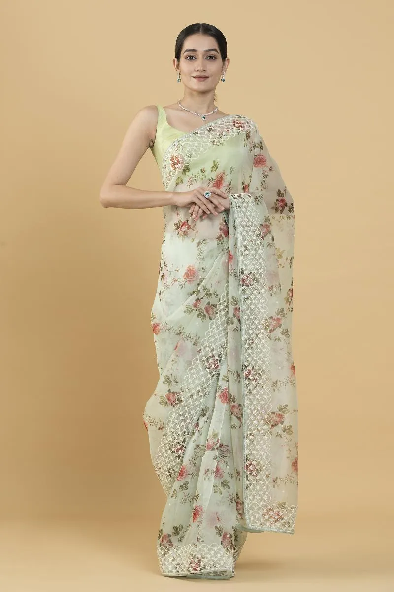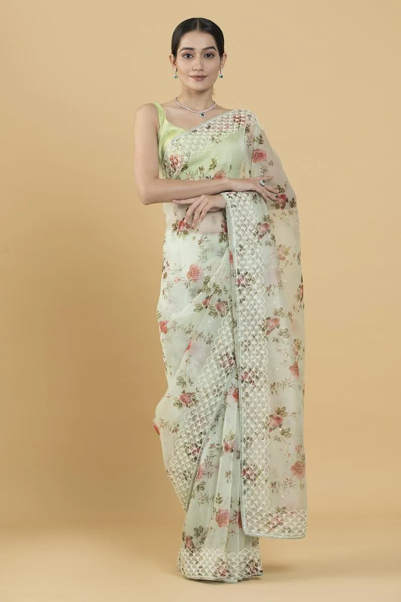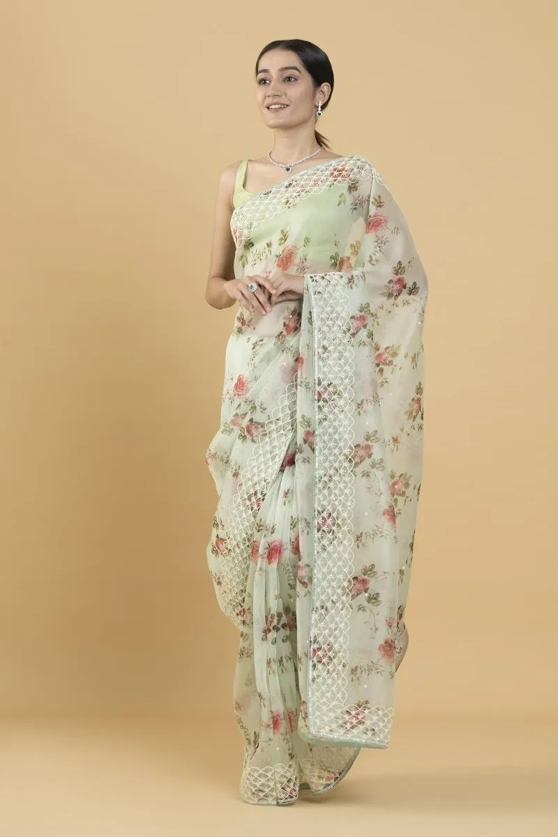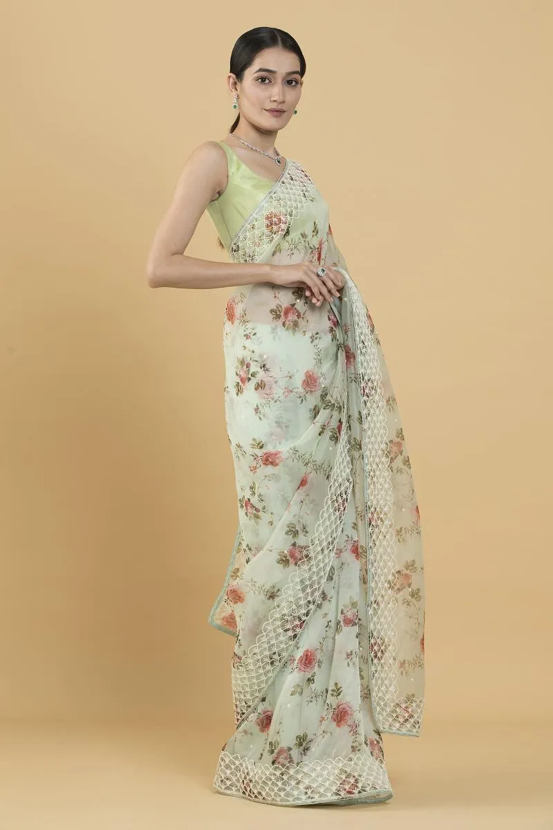 Work: Floral Print Embellished With Katdaana,sequins And Beads