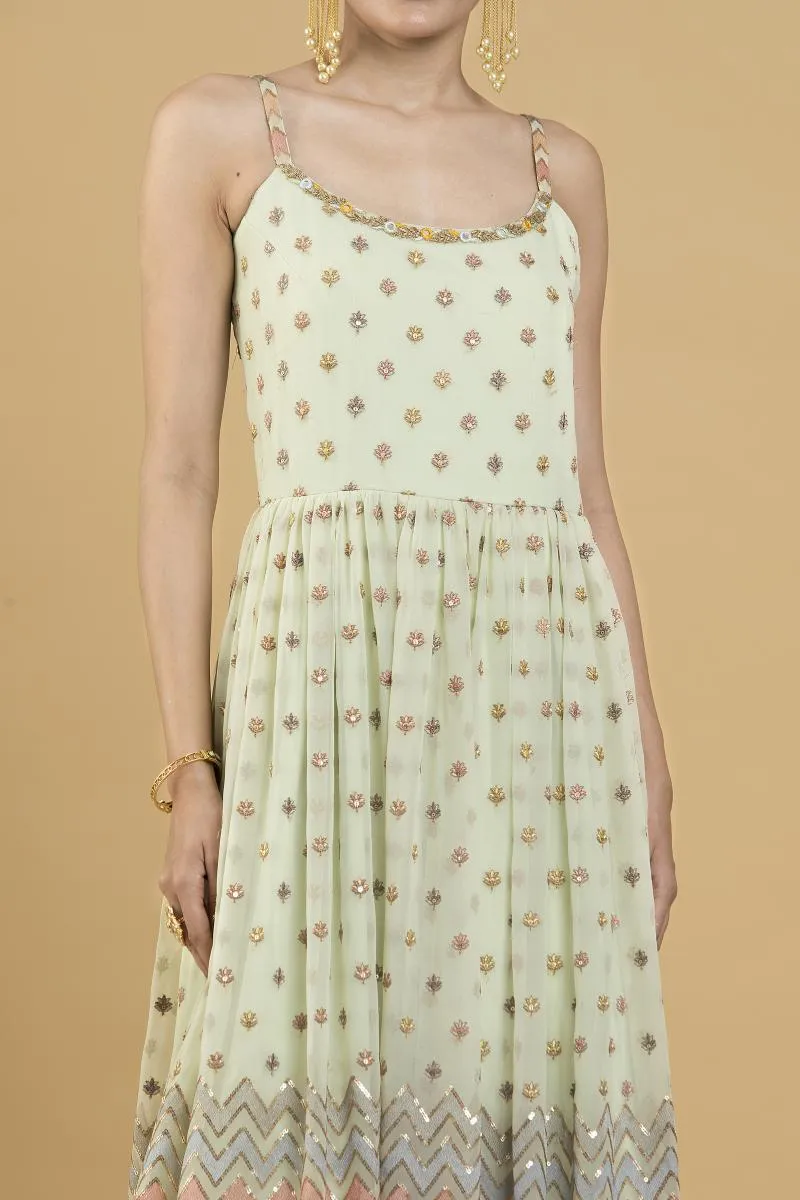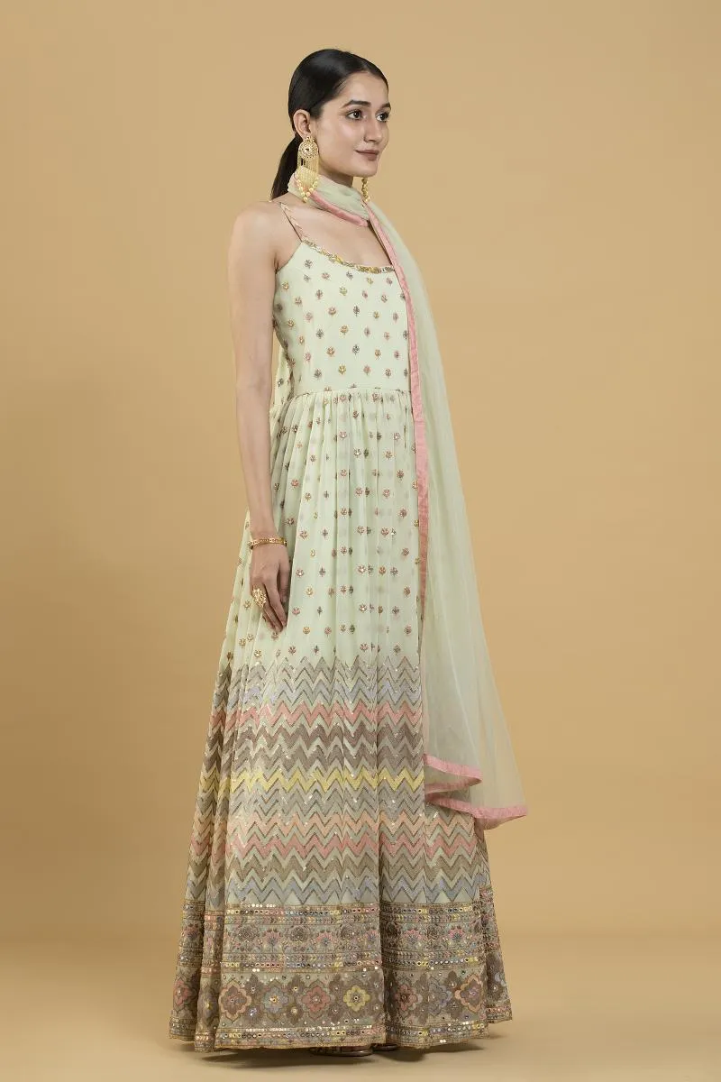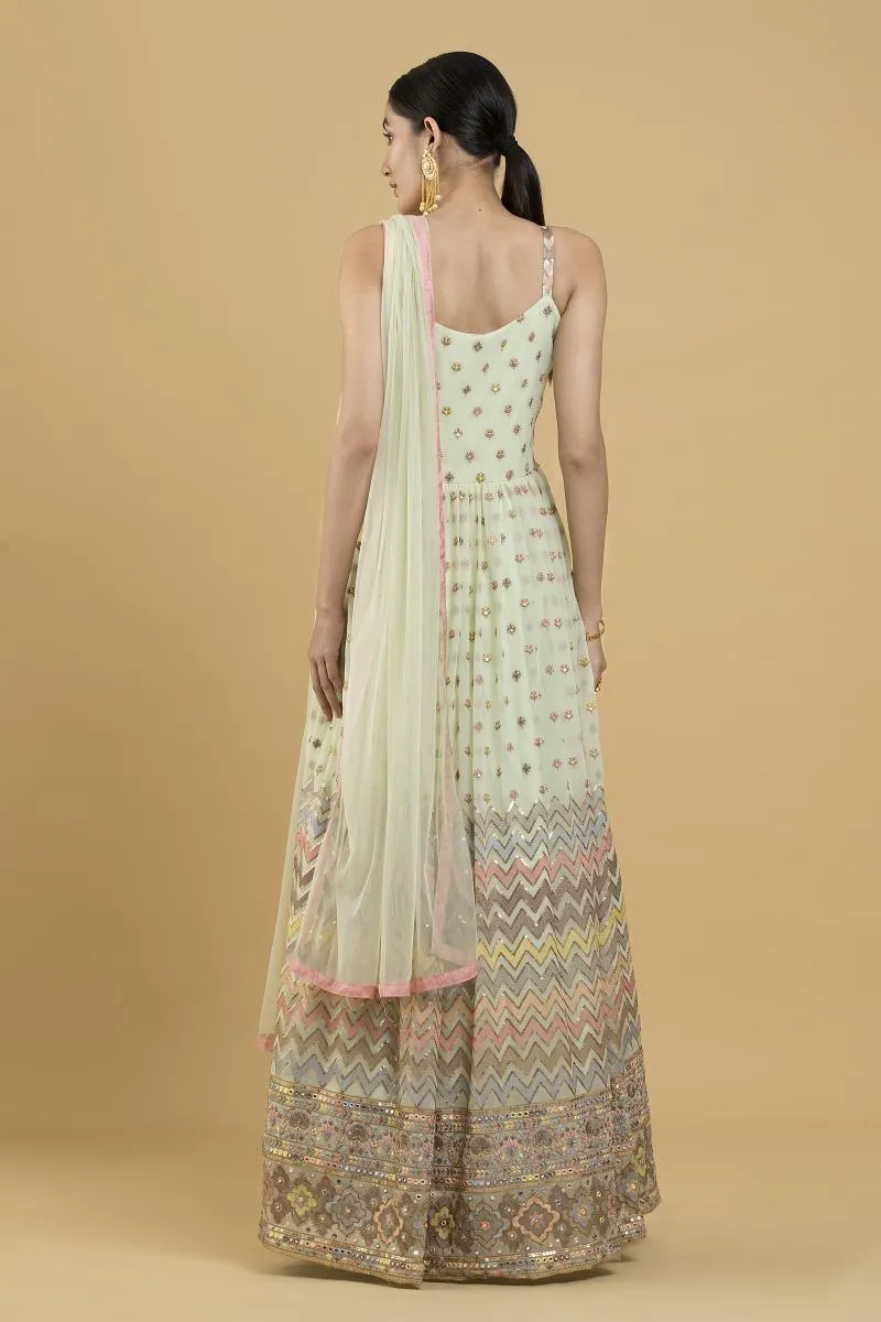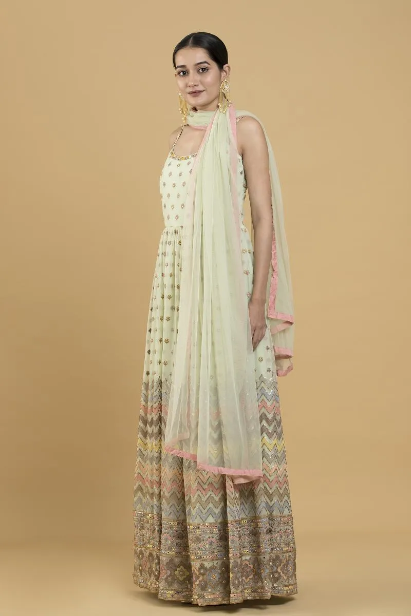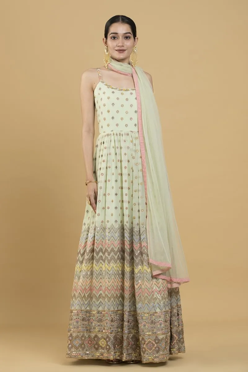 Professional dry-cleaning only. The garment should be kept in Soft Muslin fabric. Do not spray perfume directly on garment. Avoid mothball use. Kindly keep the garment in moderate climate as same of the embroidery material tends to react with the weather change.