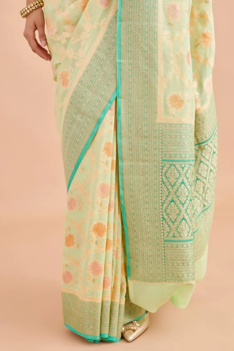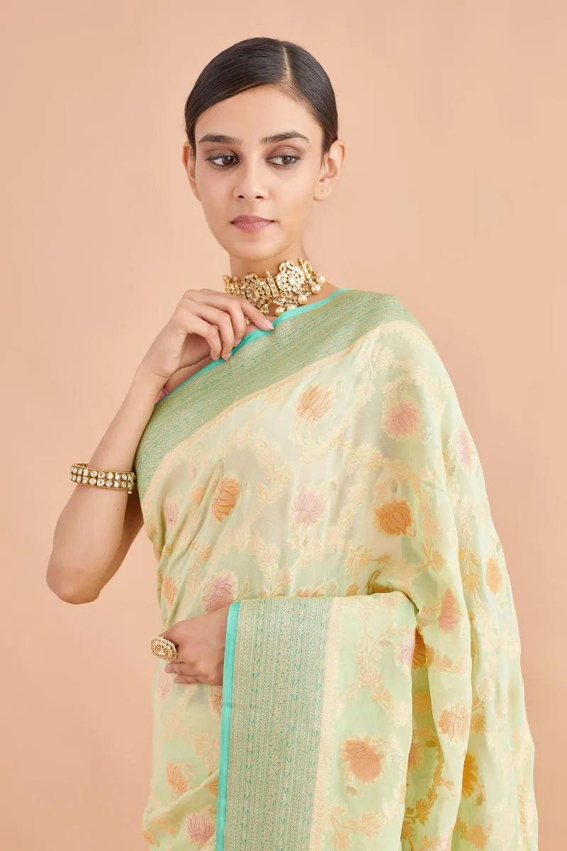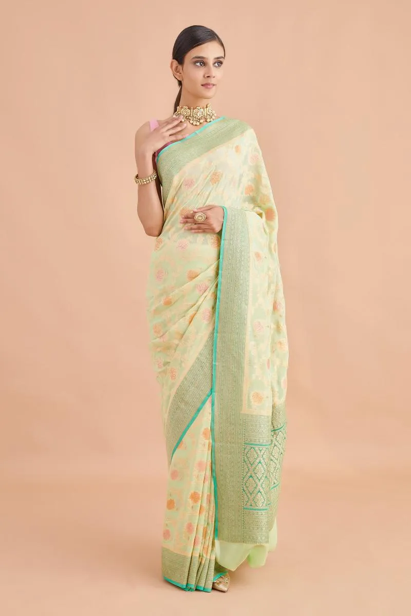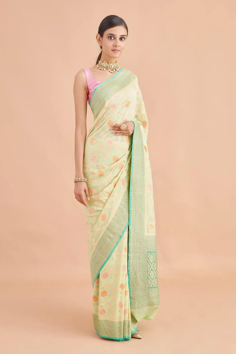 Professional dry cleanning only. Garment should be kept in Soft Muslin fabric. Do not spray perfume direictly on garment. Avoid moth ball use. Kindly keep the garment in moderate climate as same of the embroidery material tends to react with weather change.