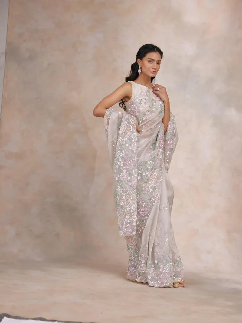 Professional dry cleaning only. The garment should be kept in Soft Muslin fabric. Do not spray perfume directly on garment. Avoid mothball use. Kindly keep the garment in moderate climate as same of the embroidery material tends to react with the weather change.