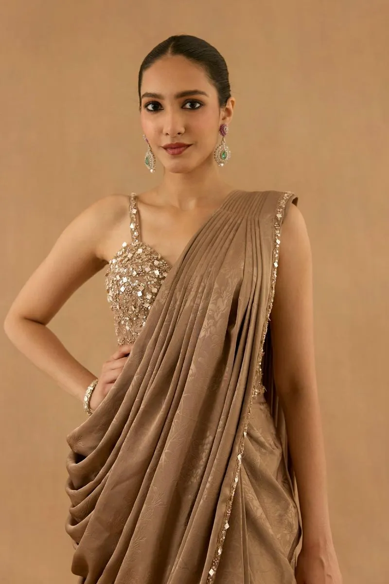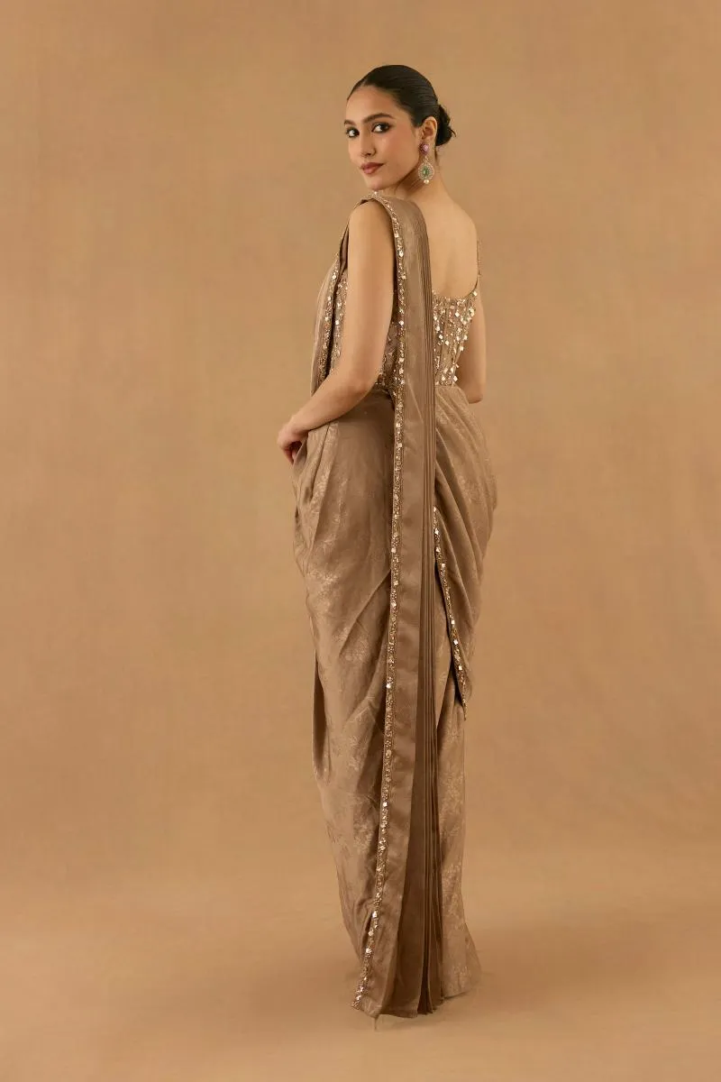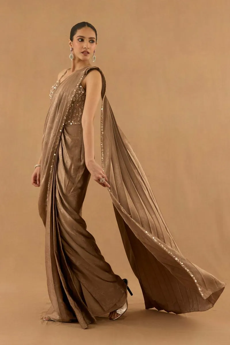Mocha Brown Satin Drape Saree