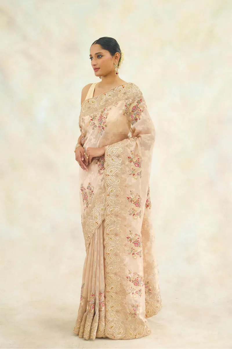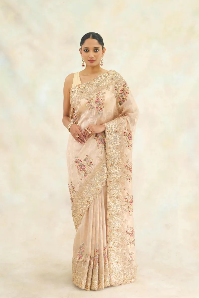Professional dry-cleaning only. The garment should be kept in Soft Muslin fabric. Do not spray perfume directly on garment. Avoid mothball use. Kindly keep the garment in moderate climate as same of the embroidery material tends to react with the weather change.