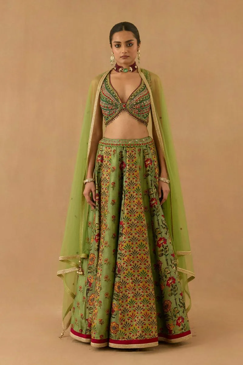 Professional dry-cleaning only. The garment should be kept in Soft Muslin fabric. Do not spray perfume directly on garment. Avoid mothball use. Kindly keep the garment in moderate climate as same of the embroidery material tends to react with the weather change.