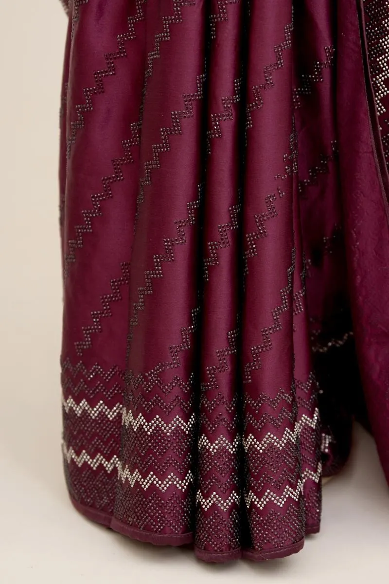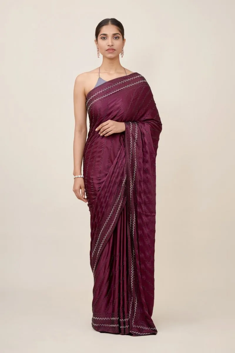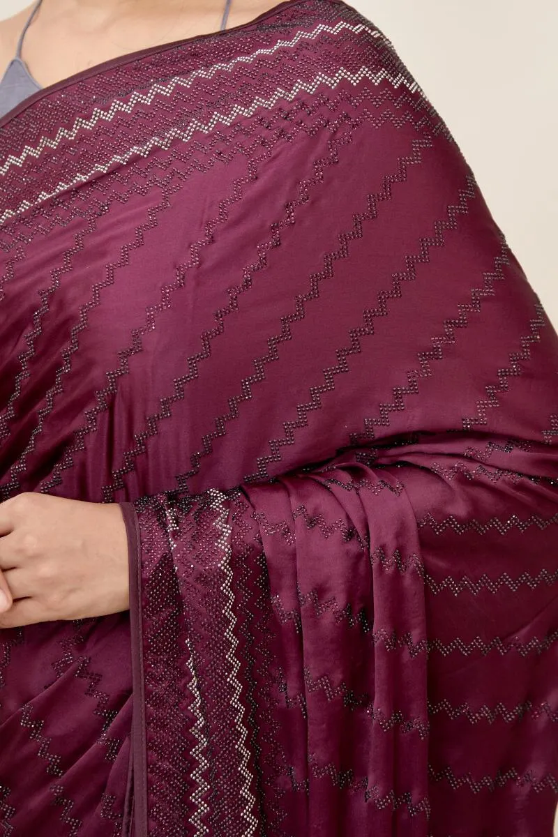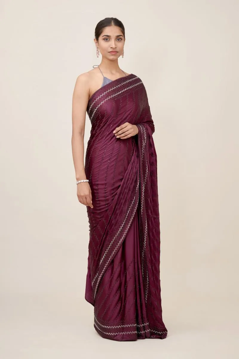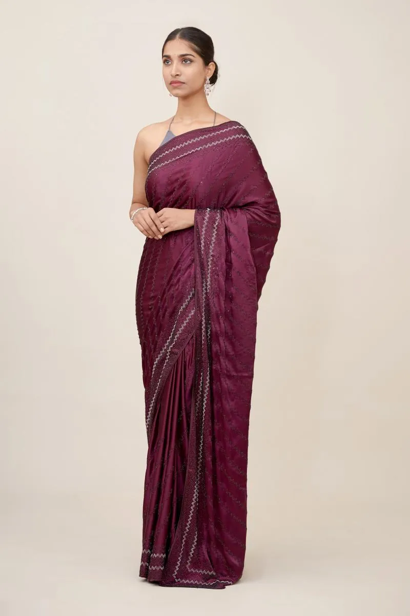 Work: zigzaf border on saree with embellished with sworski PLAIN blousewith border on sleeves with sworski