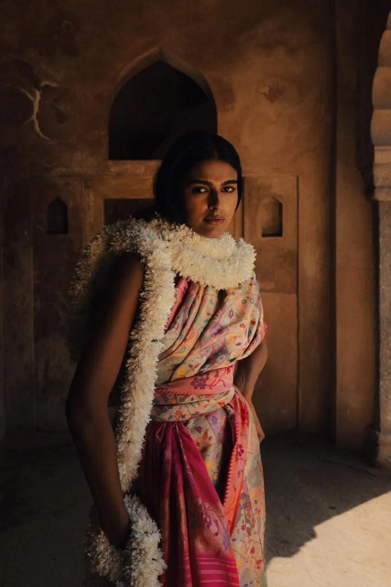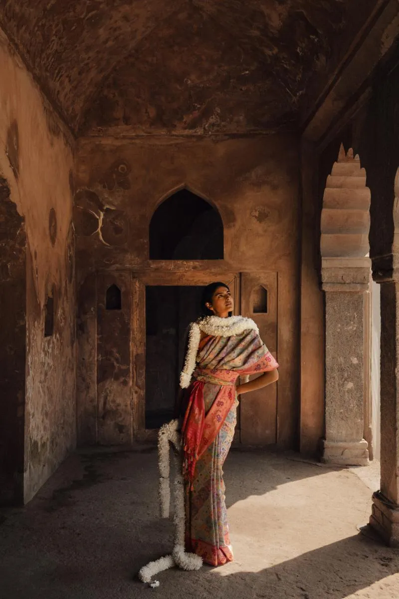 Professional dry-cleaning only. The garment should be kept in Soft Muslin fabric. Do not spray perfume directly on garment. Avoid mothball use. Kindly keep the garment in moderate climate as same of the embroidery material tends to react with the weather change.