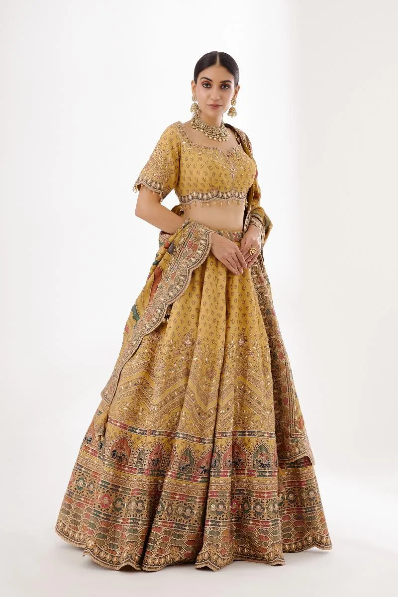 Professional dry-cleaning only. The garment should be kept in Soft Muslin fabric. Do not spray perfume directly on garment. Avoid mothball use. Kindly keep the garment in moderate climate as same of the embroidery material tends to react with the weather change.