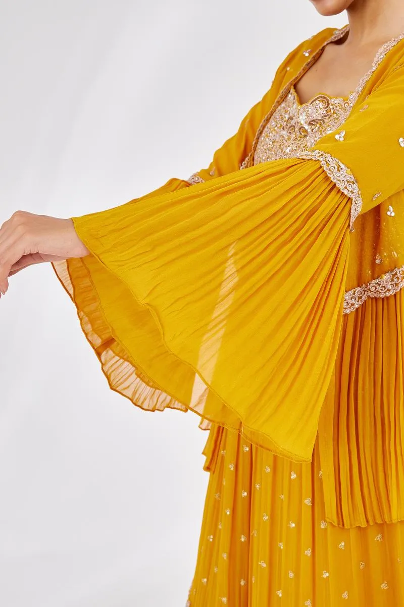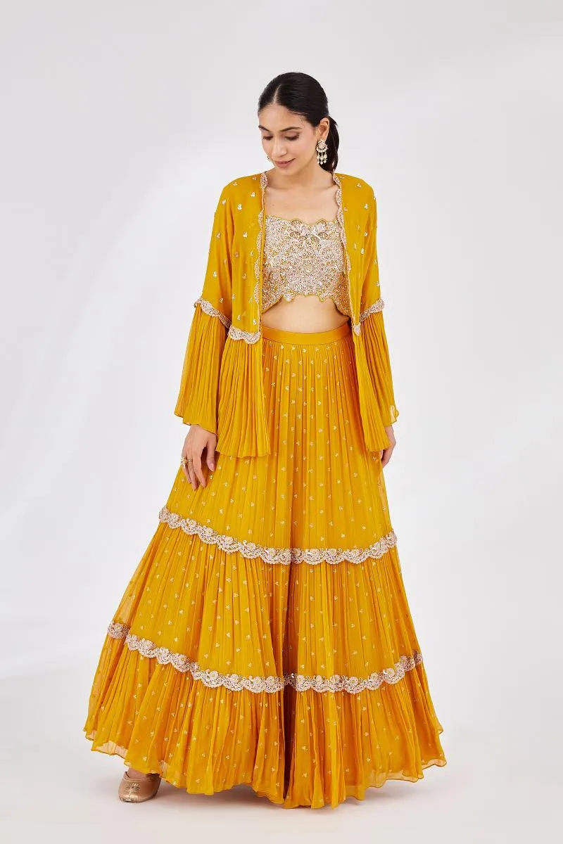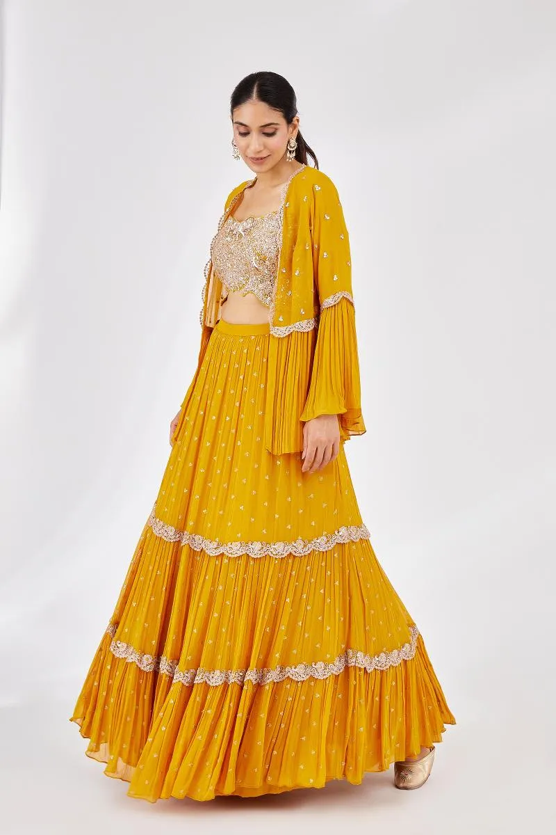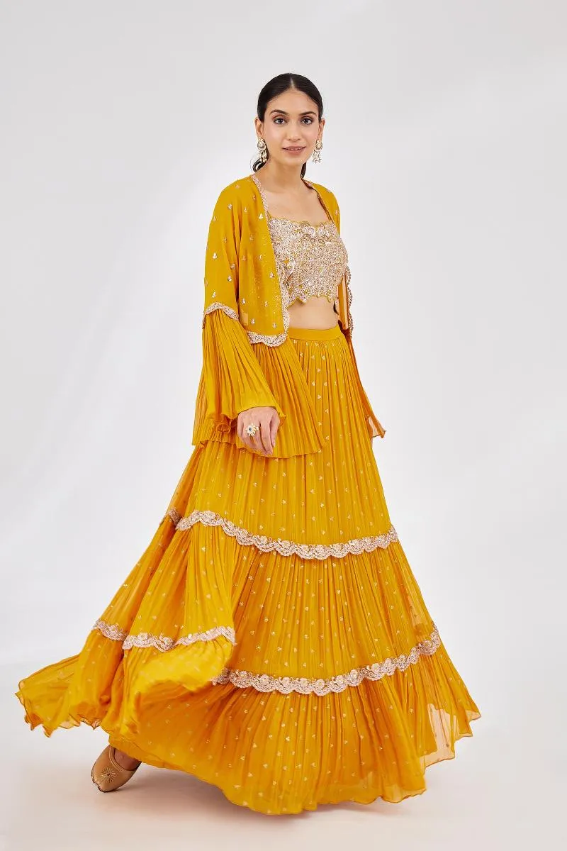 Mustard Tiered Georegette Lehenga