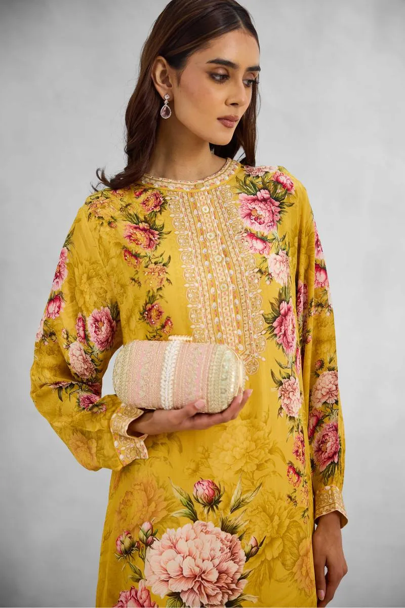 Professional dry-cleaning only. The garment should be kept in Soft Muslin fabric. Do not spray perfume directly on garment. Avoid mothball use. Kindly keep the garment in moderate climate as same of the embroidery material tends to react with the weather change.