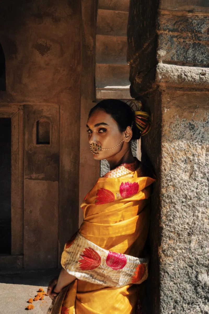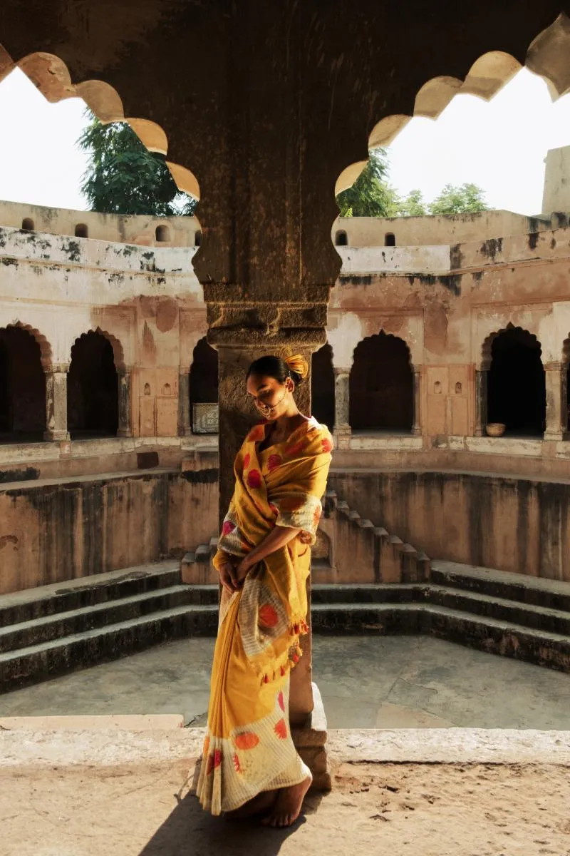 Mustard Yellow Katan Silk Saree