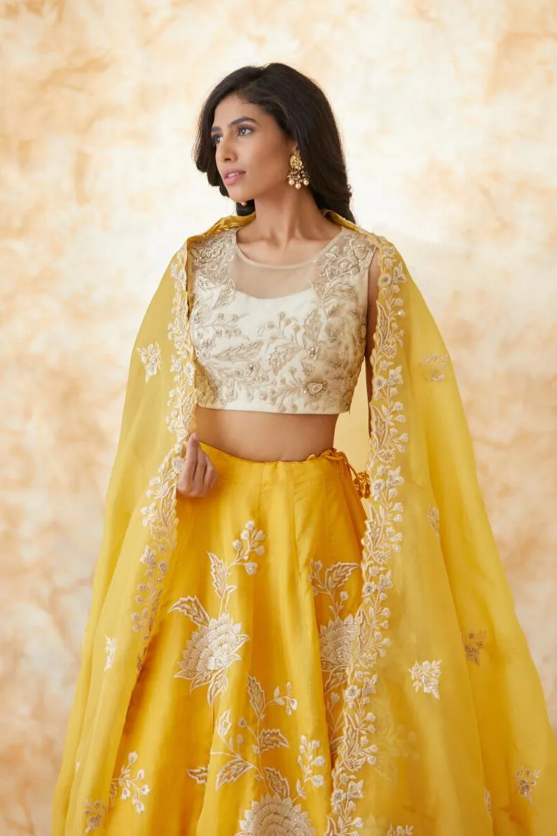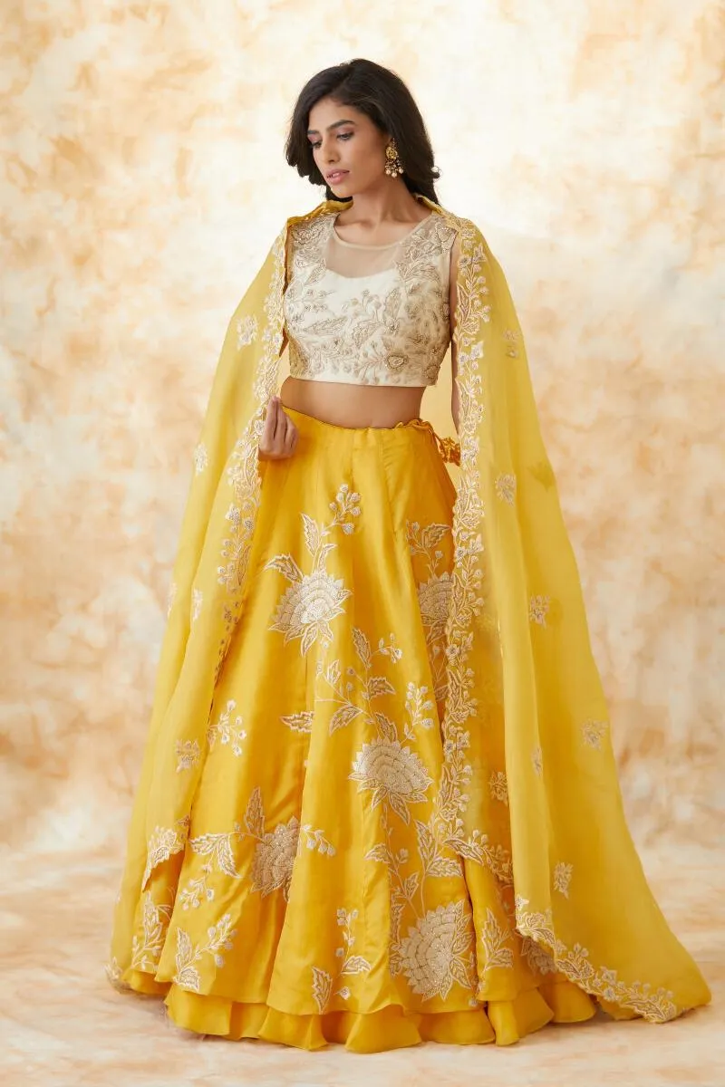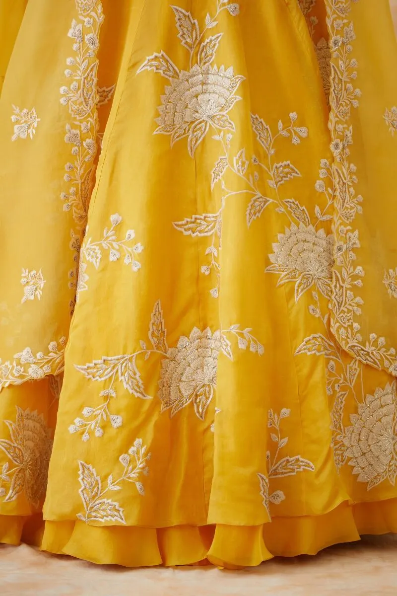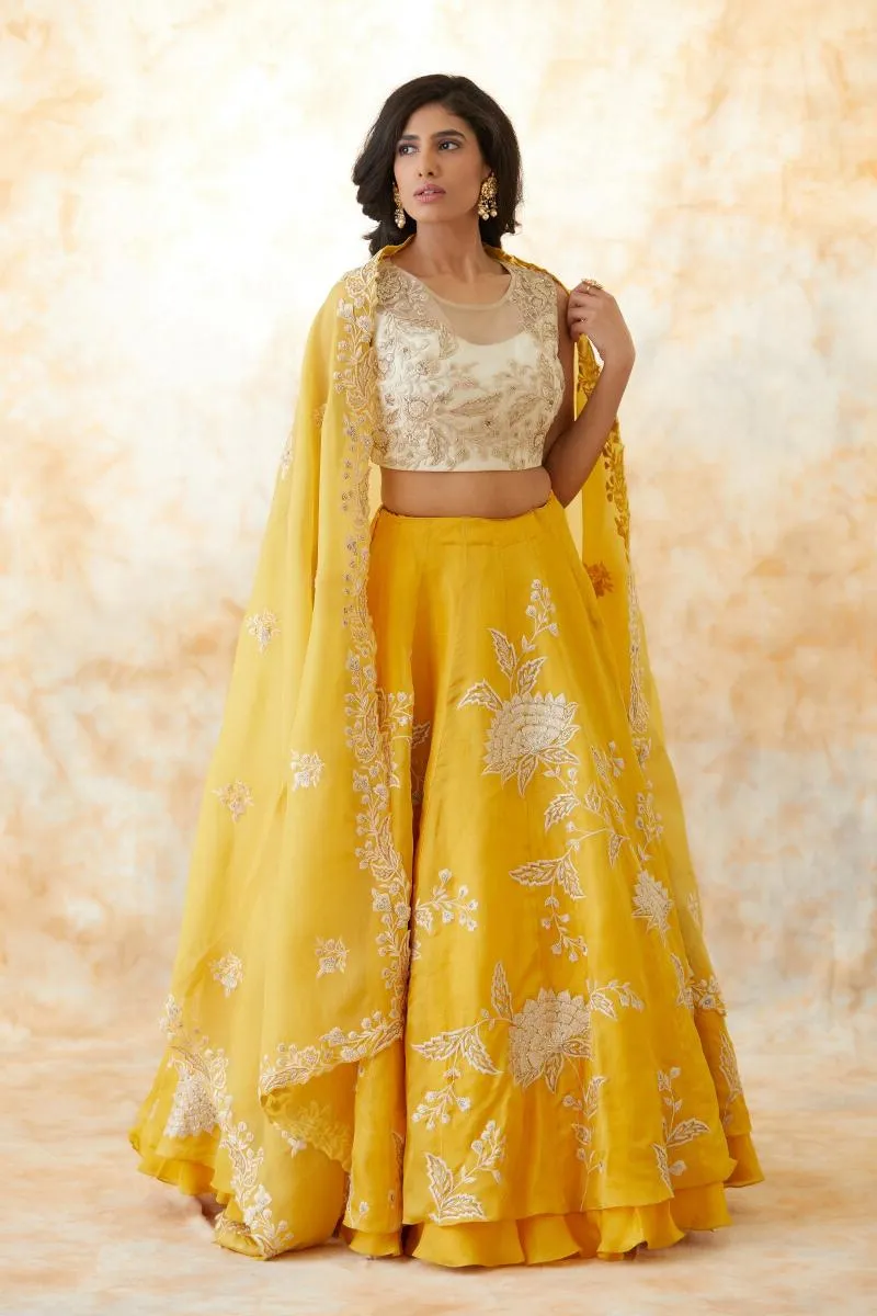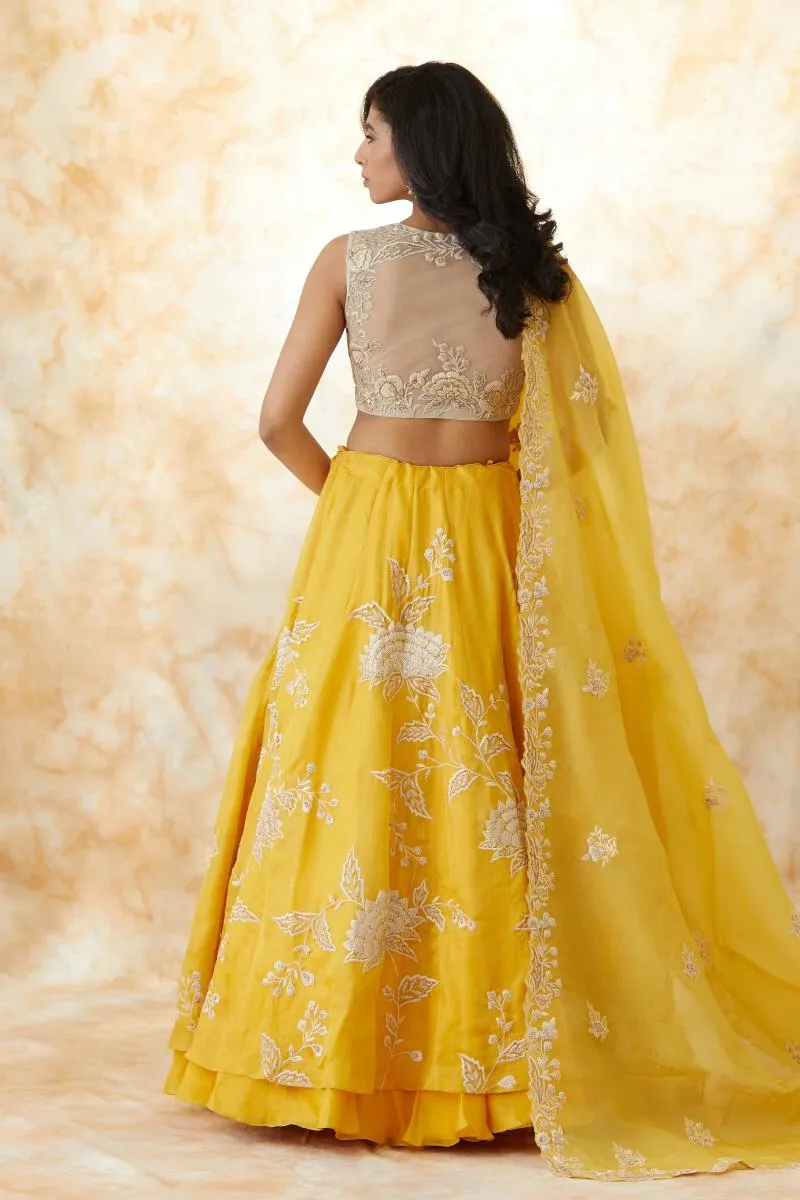 Mustard Yellow Organza Lehenga