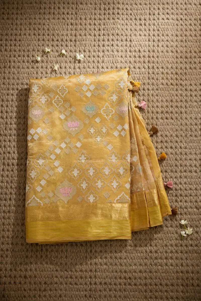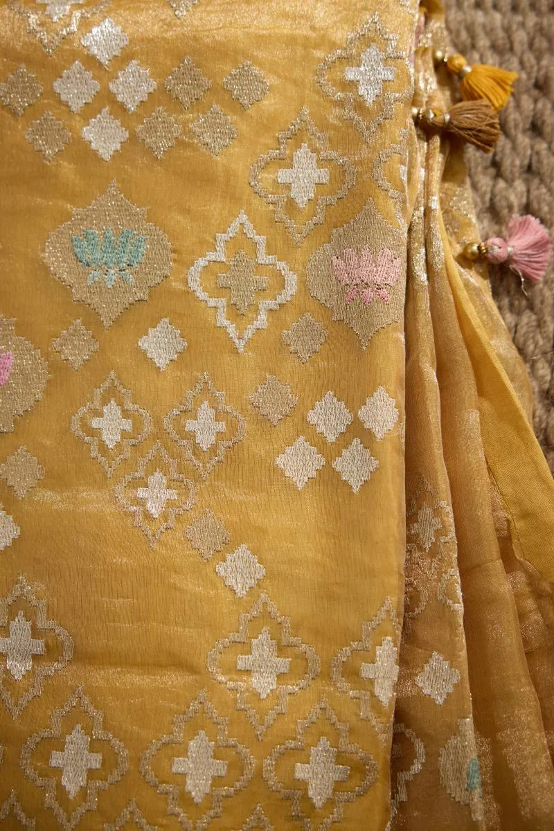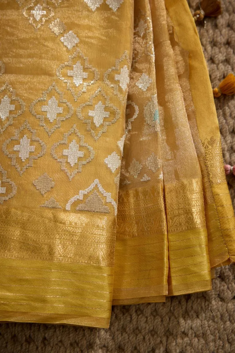 Mustard Yellow Organza Tissue Saree