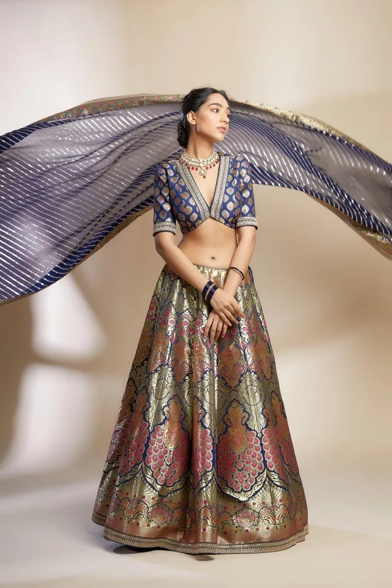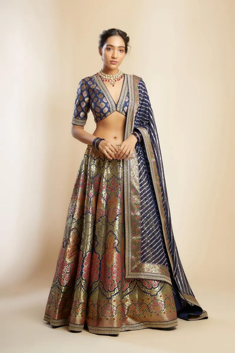 Professional dry-cleaning only. The garment should be kept in Soft Muslin fabric. Do not spray perfume directly on garment. Avoid mothball use. Kindly keep the garment in moderate climate as same of the embroidery material tends to react with the weather change.