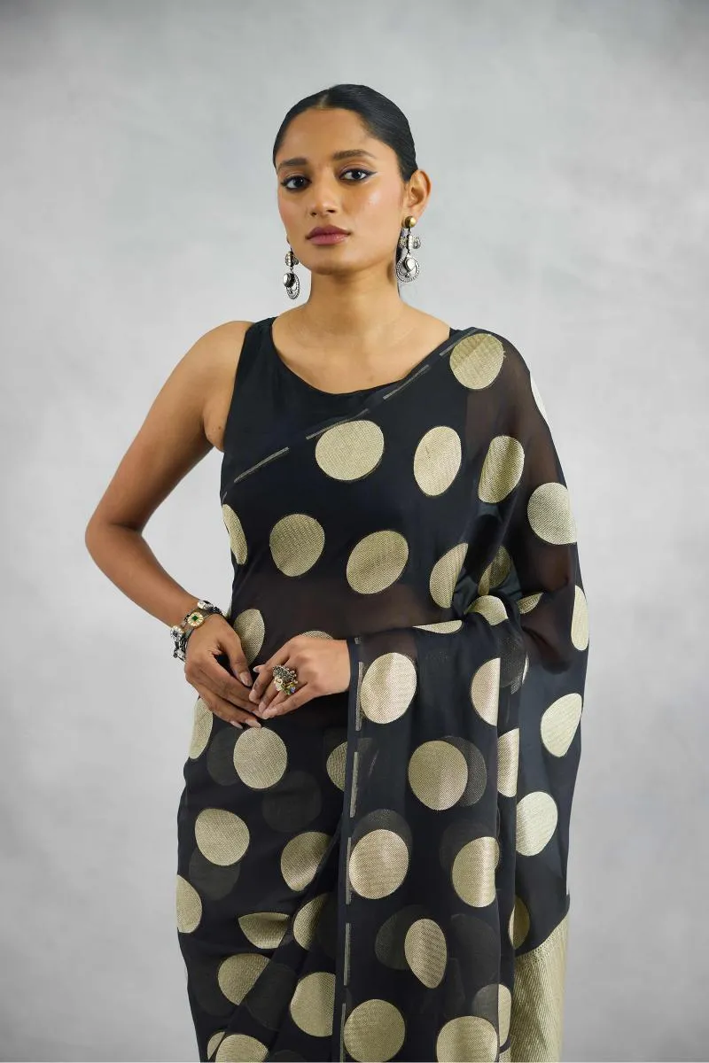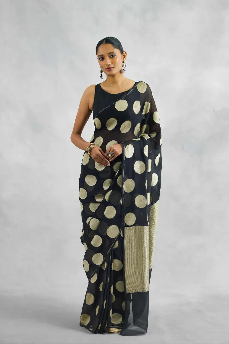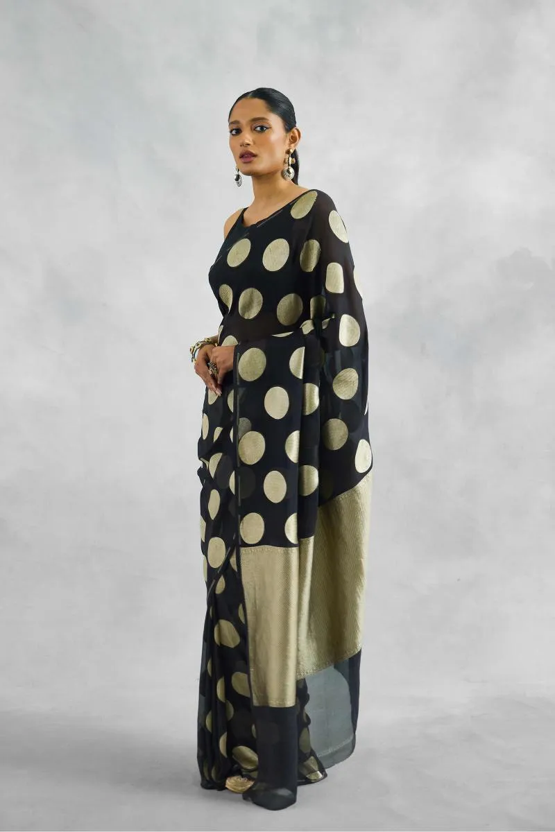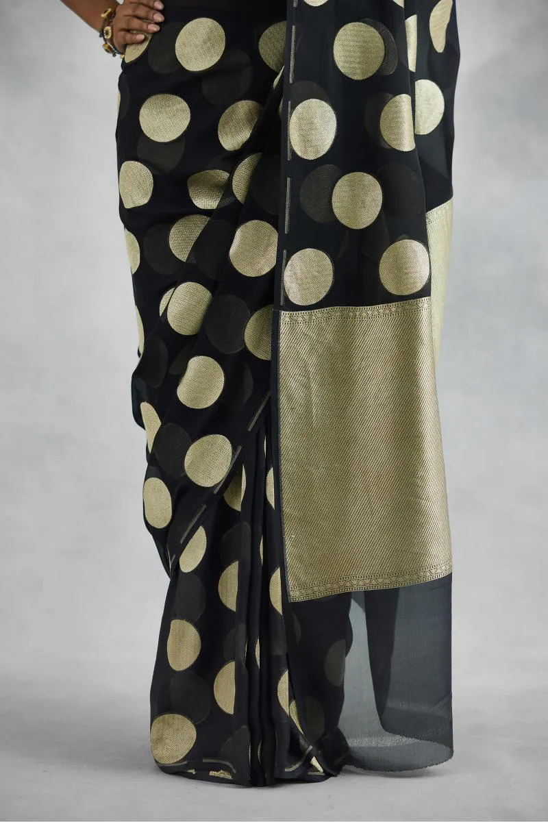 Obsidian Black Banarasi Khaddi Georgette Saree