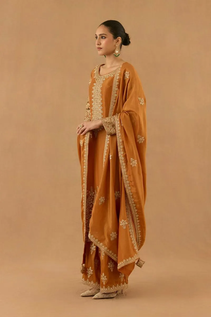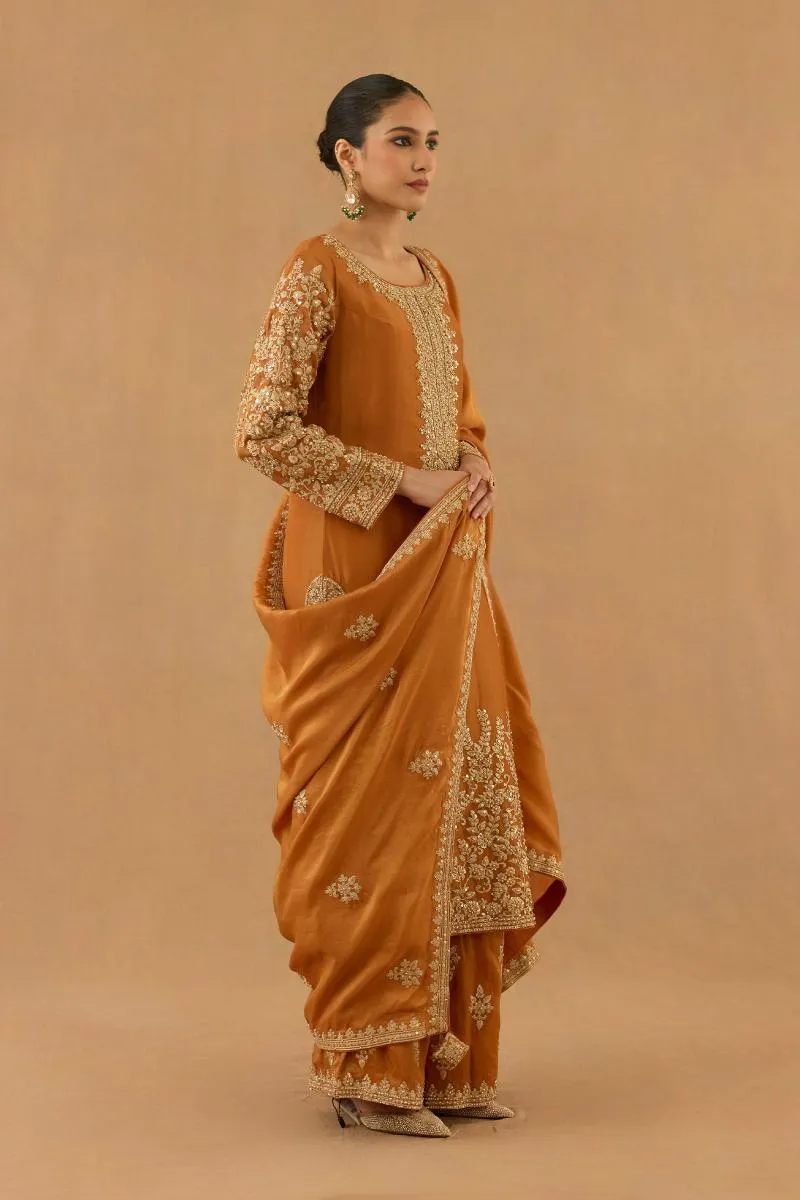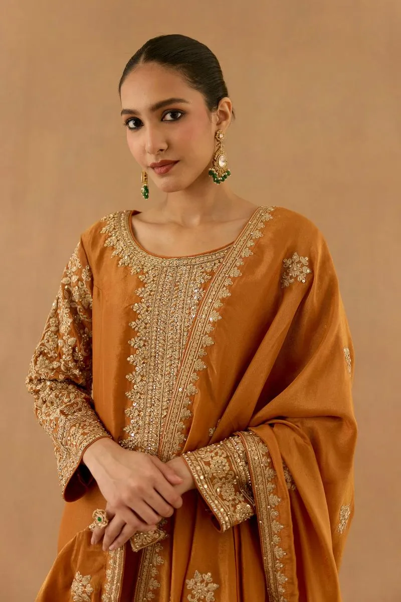 Professional dry-cleaning only. The garment should be kept in Soft Muslin fabric. Do not spray perfume directly on garment. Avoid mothball use. Kindly keep the garment in moderate climate as same of the embroidery material tends to react with the weather change.