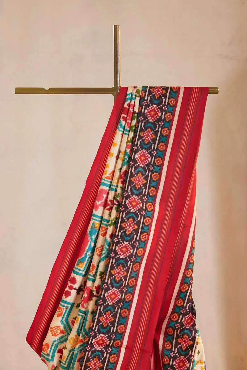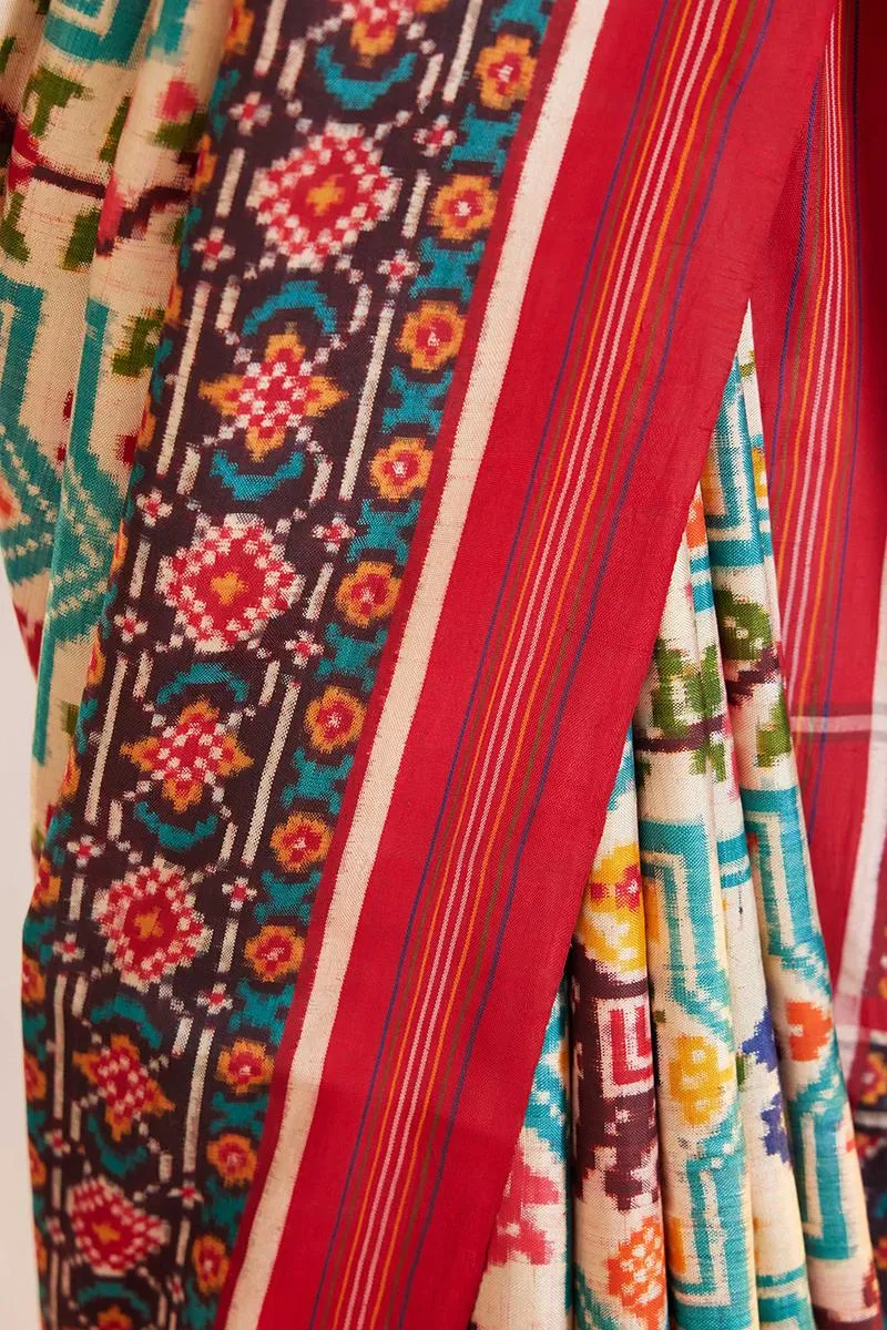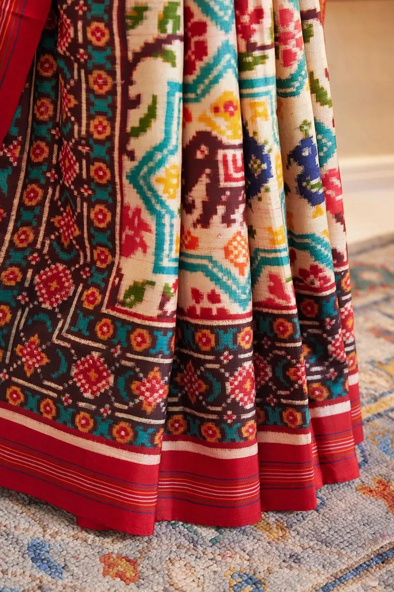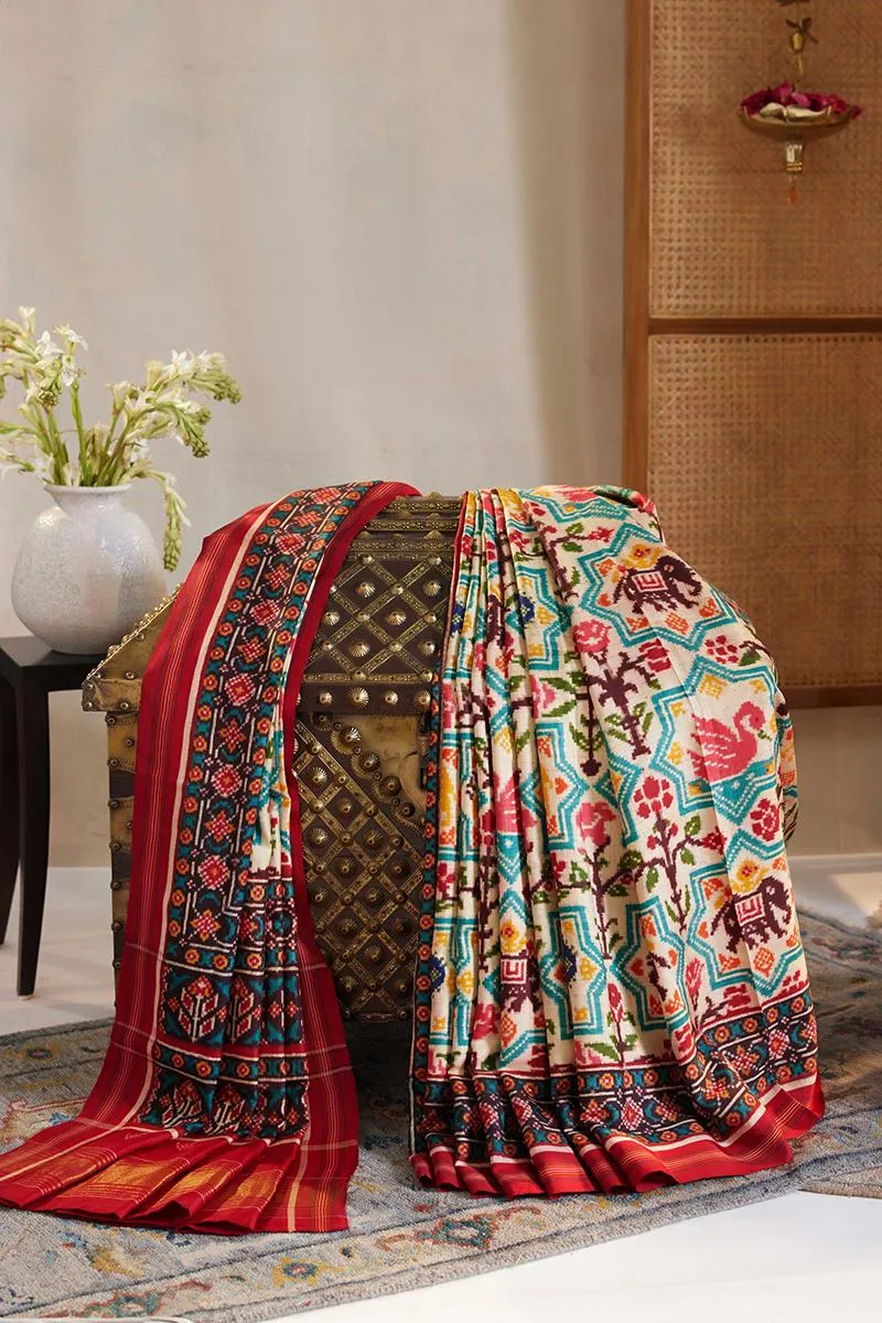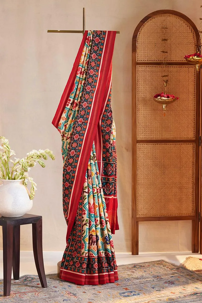 Off-white Patola silk saree