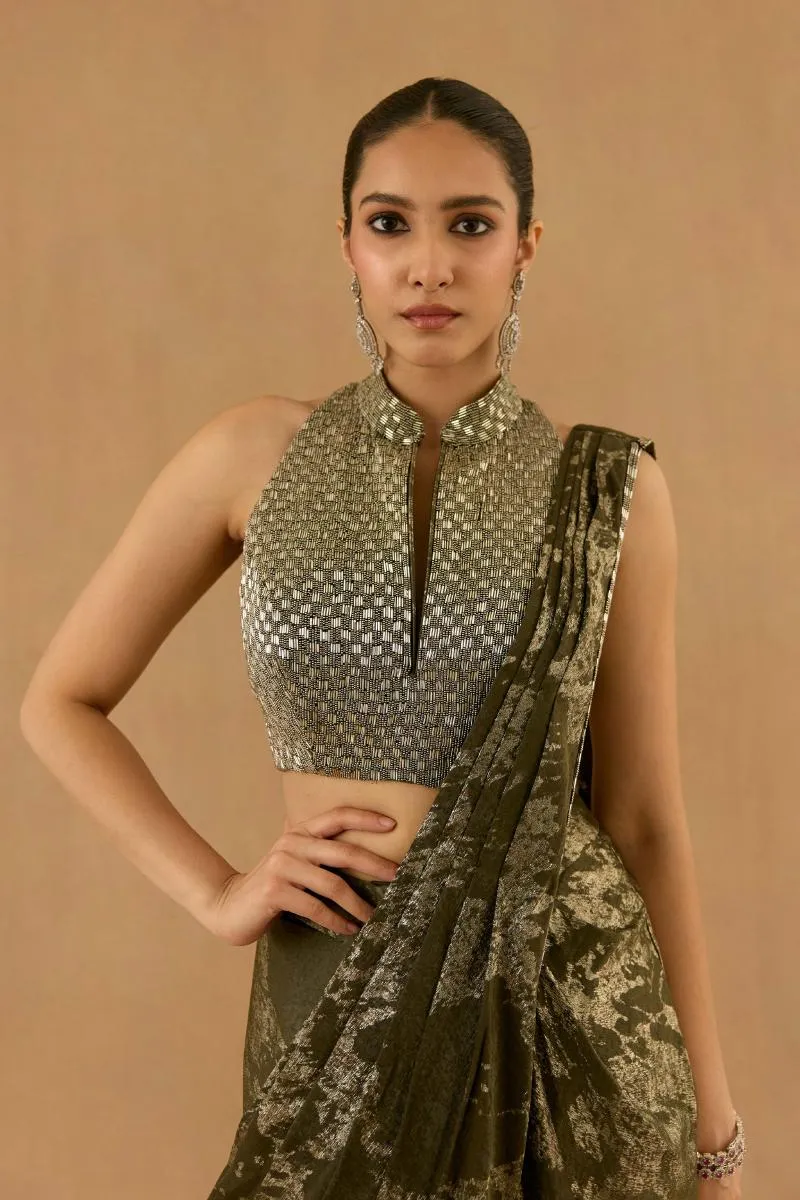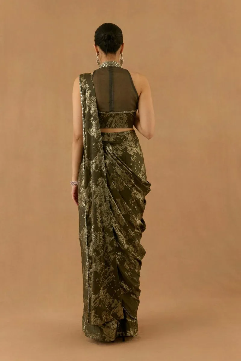 Olive Green georgette drape saree