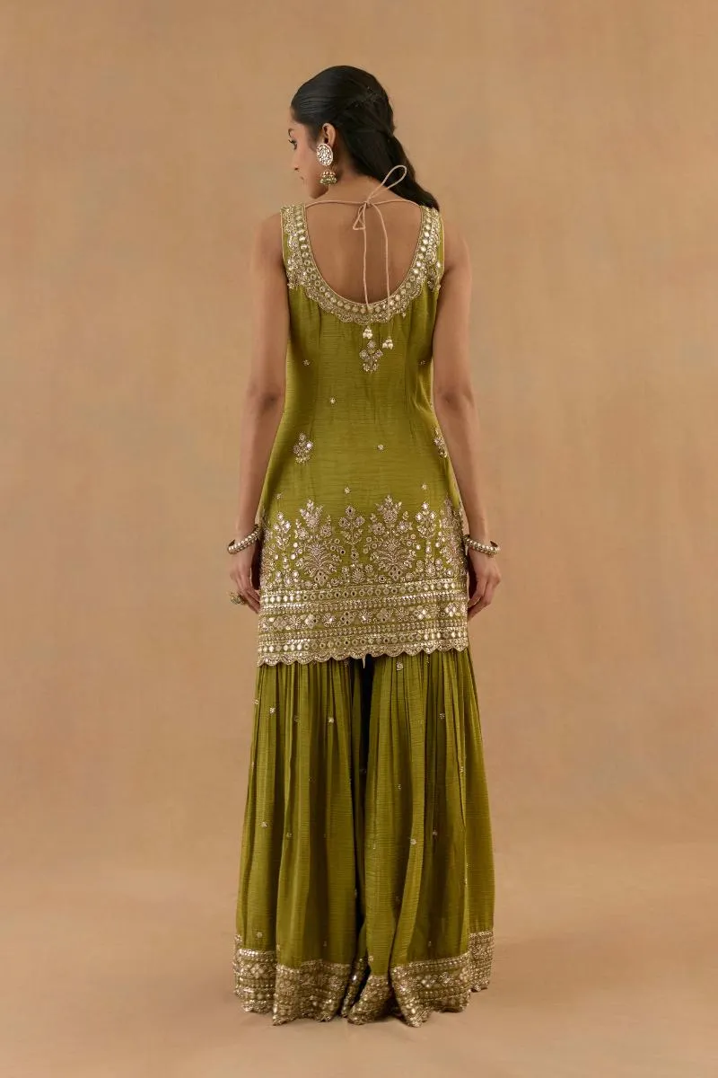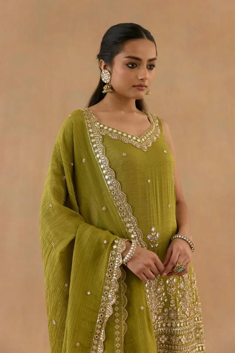 Professional dry-cleaning only. The garment should be kept in Soft Muslin fabric. Do not spray perfume directly on garment. Avoid mothball use. Kindly keep the garment in moderate climate as same of the embroidery material tends to react with the weather change.