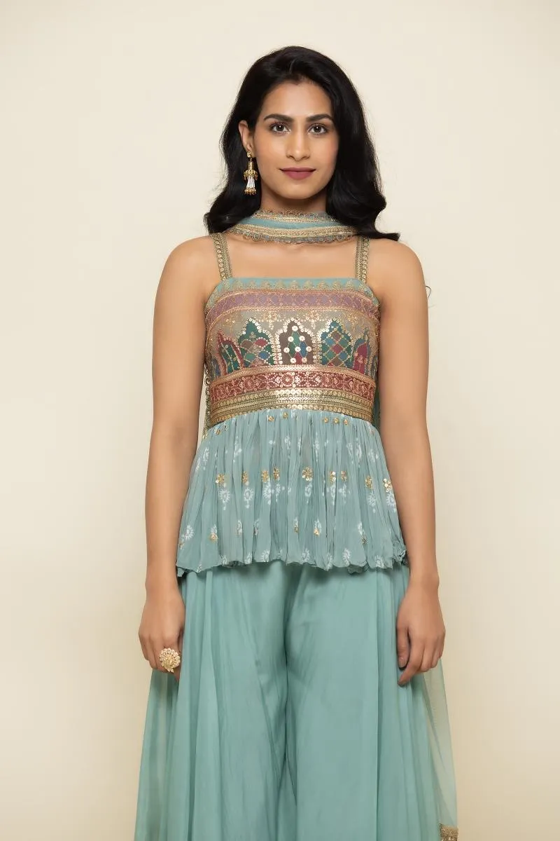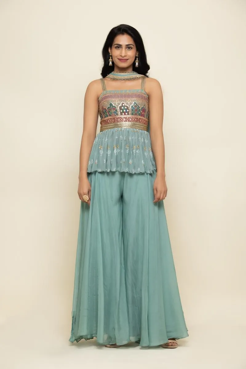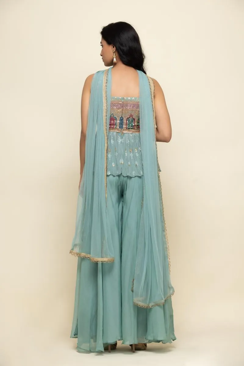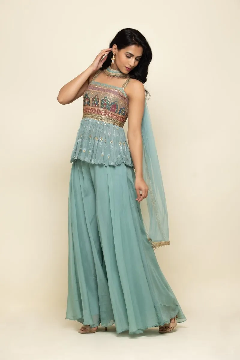 Pale Blue Goergette Sharara Suit