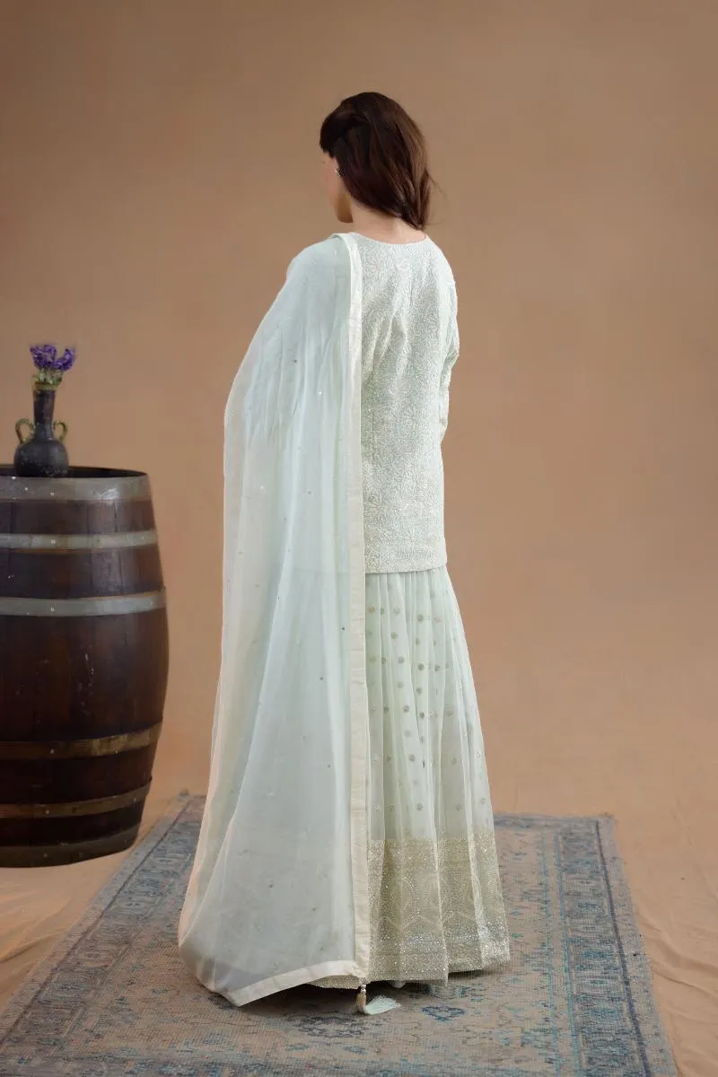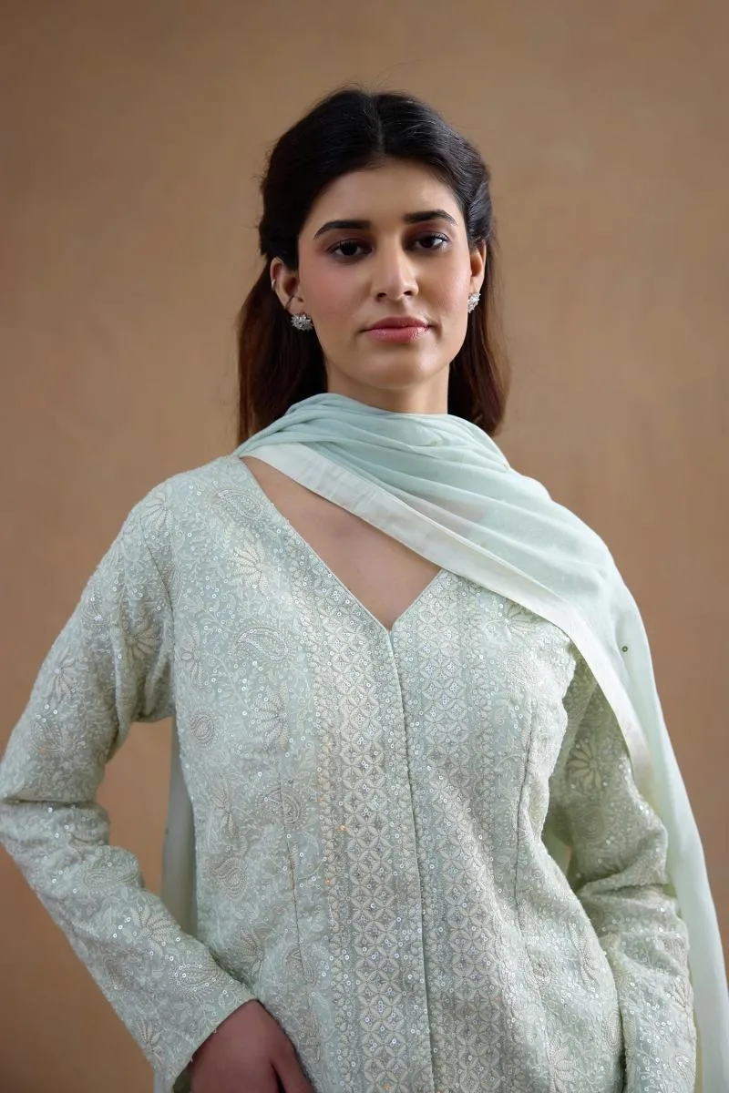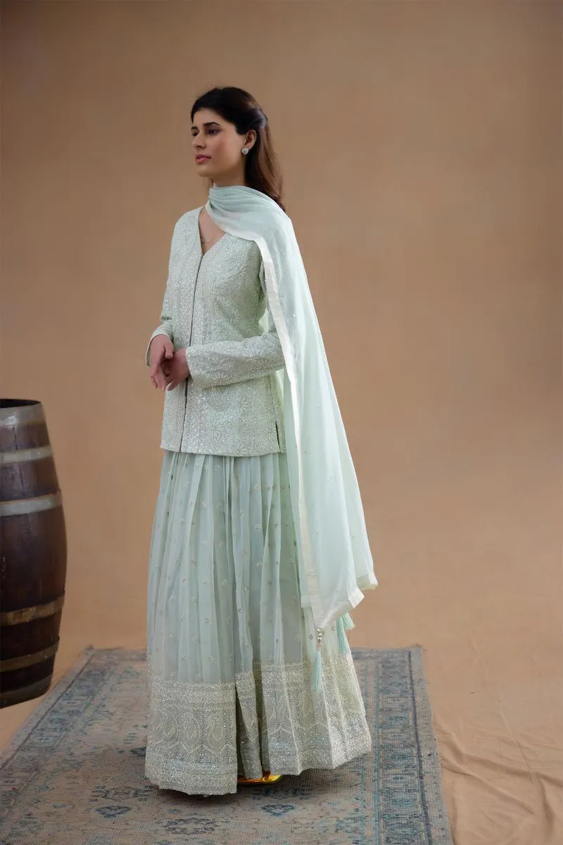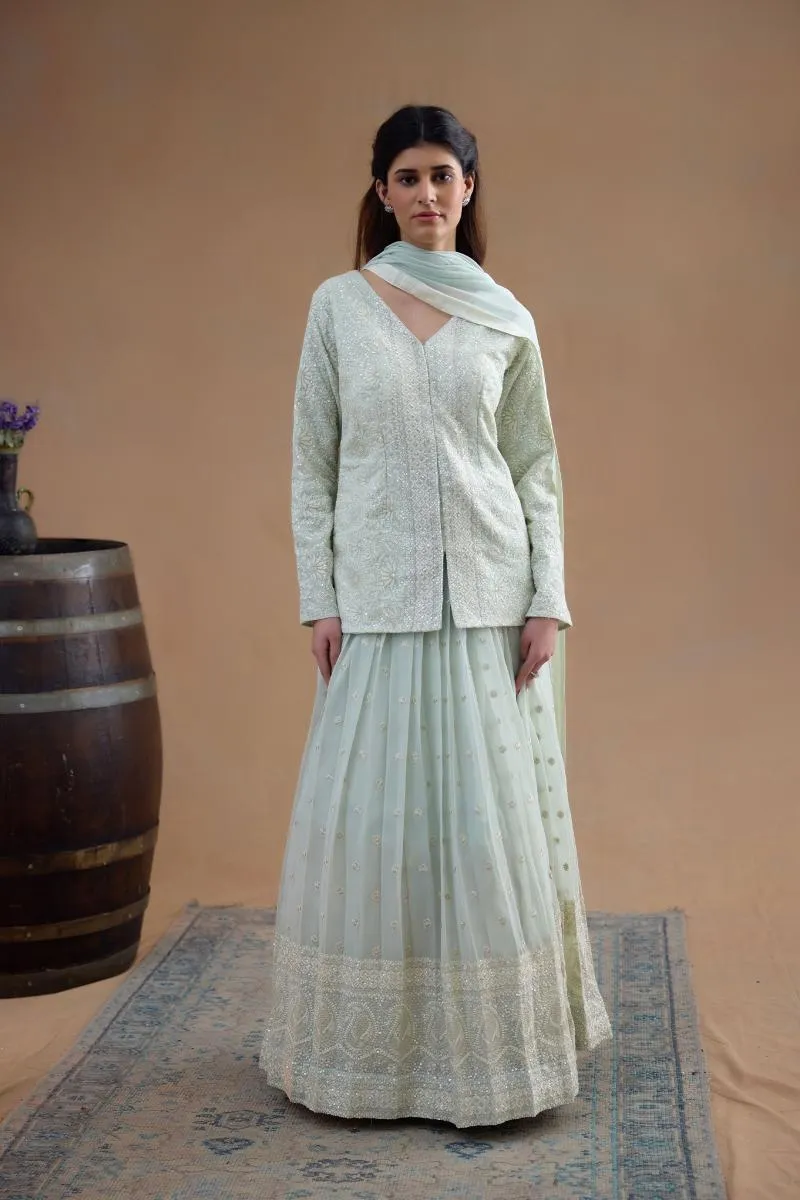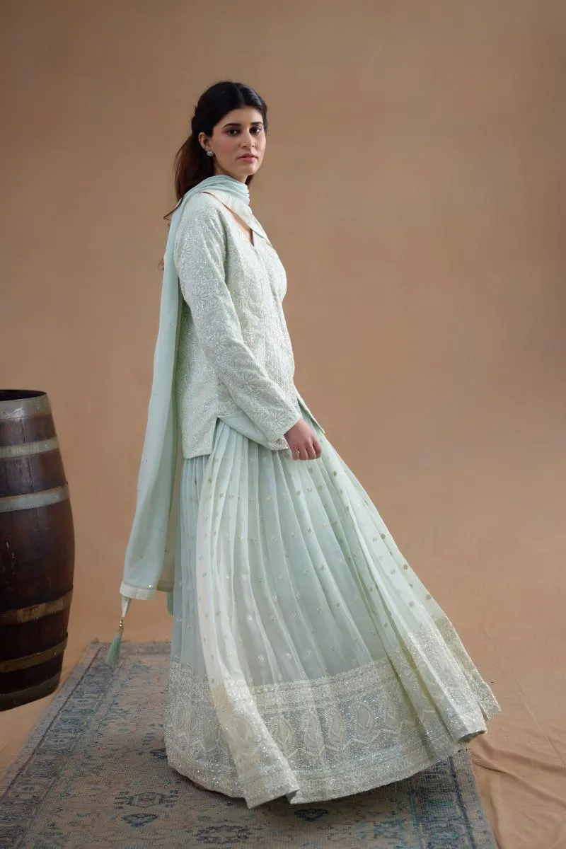 Professional dry-cleaning only. The garment should be kept in Soft Muslin fabric. Do not spray perfume directly on garment. Avoid mothball use. Kindly keep the garment in moderate climate as same of the embroidery material tends to react with the weather change.