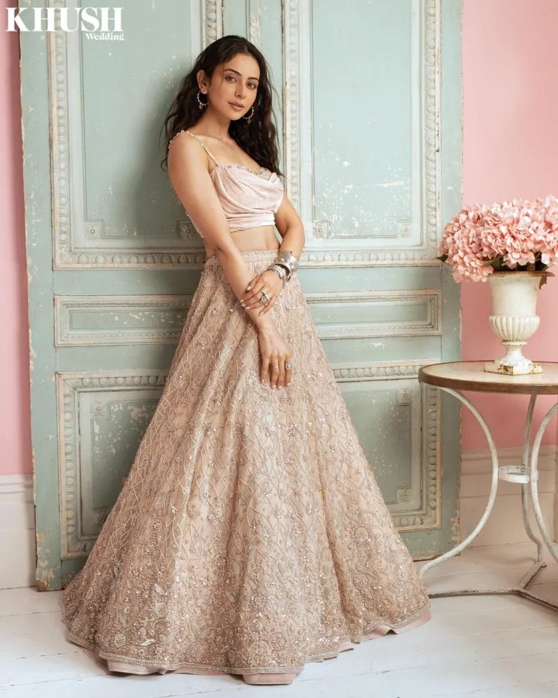 Pastel Peach Net Lehenga